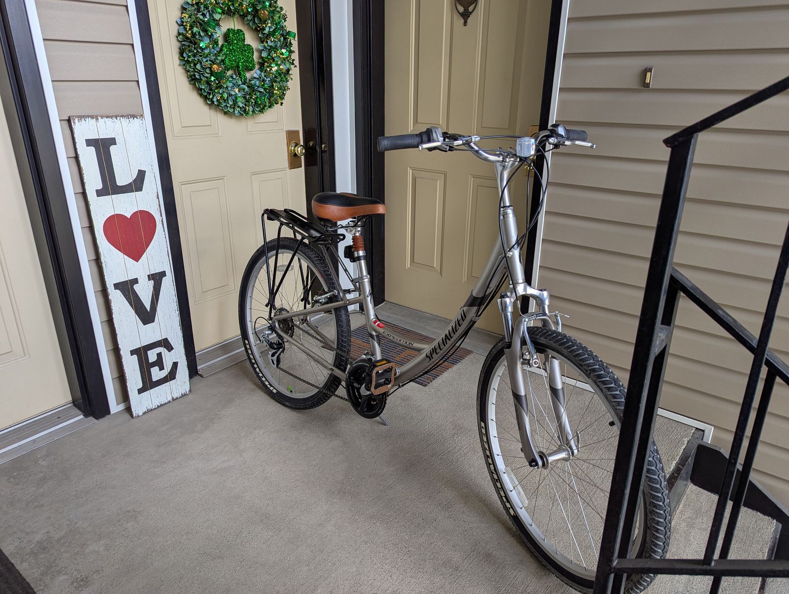 Venmoaround town commuter w/front suspension, comfort plus wide seat w/springs, seat post suspension. medically designed handlebar grips reduce numbness\fatigue. 21 speeds for peddling efficiently on any terrain. shimano hardware - specialized hemisphere w/flak jacket double walled 26” tires, aluminum rims w/(32)14g/2mm stainless steel spokes.