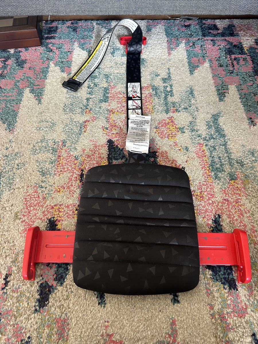 VenmoThis is a foldable portable car seat that brings the seatbelt down to a safe place for kids shoulders. This was great for air travel as it fit in luggage, and could be used in rental cars. Never been involved in a car accident.
