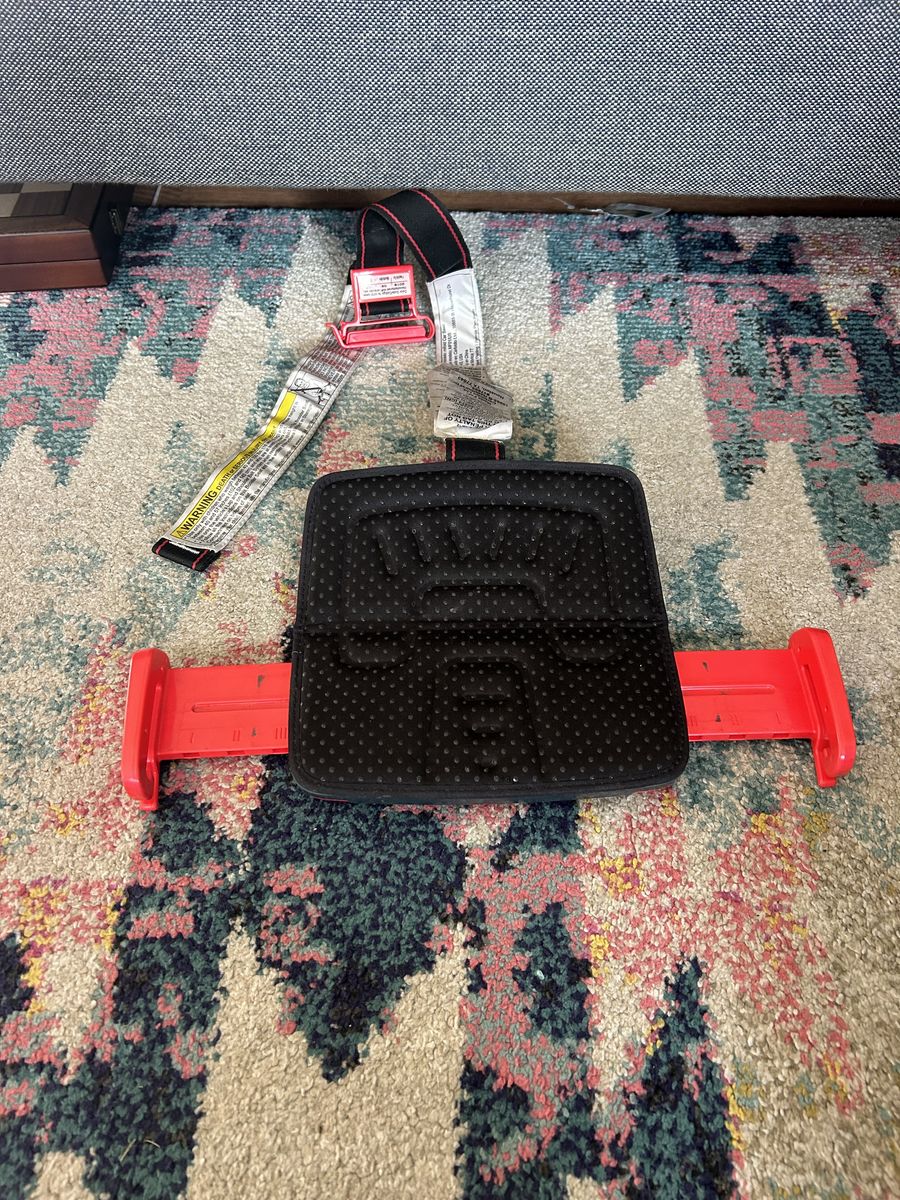 VenmoThis is a foldable portable car seat that brings the seatbelt down to a safe place for kids shoulders. This was great for air travel as it fit in luggage, and could be used in rental cars. Never been involved in a car accident.