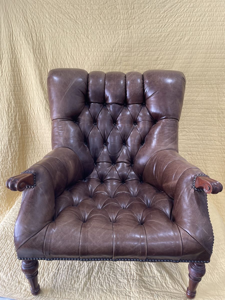 PayPalBeautiful used tufted leather chair with ottoman.
