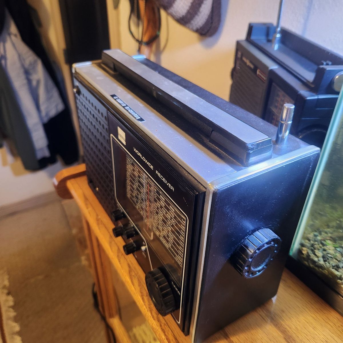 VenmoI have a vintage 1960s/1970s Sharp Worldwide reciever model FY-409U for sale. Everything appears to work as it should, but it does crackle loud when the volume is adjusted. I havent tested every single station and airwave so im not one hundred percent sure if all the different air waves work. The radio has someone's name engraved on top. It has a built in plug and can also run on batteries.