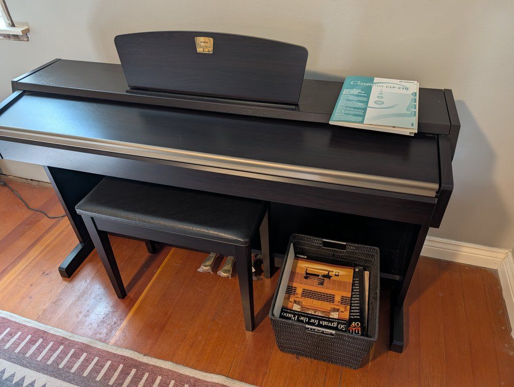 VenmoLike new Yamaha Clavinova CLP-220. This piano has never been in storage. It has always been in a home and covered with a blanket, and it has only been played a handful of times. The pedals are covered in their original plastic.