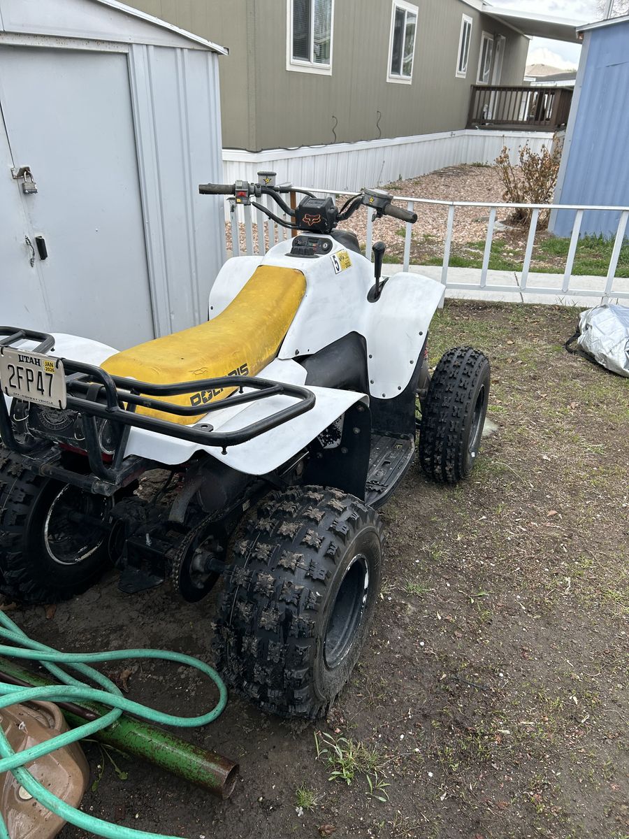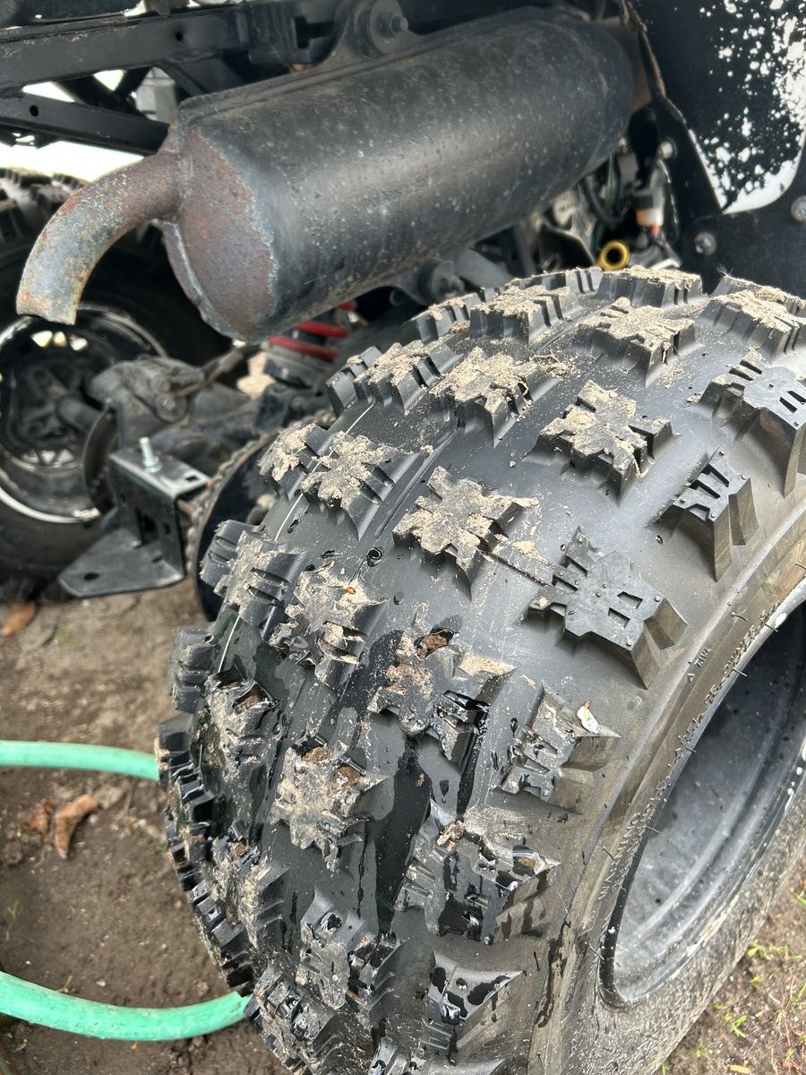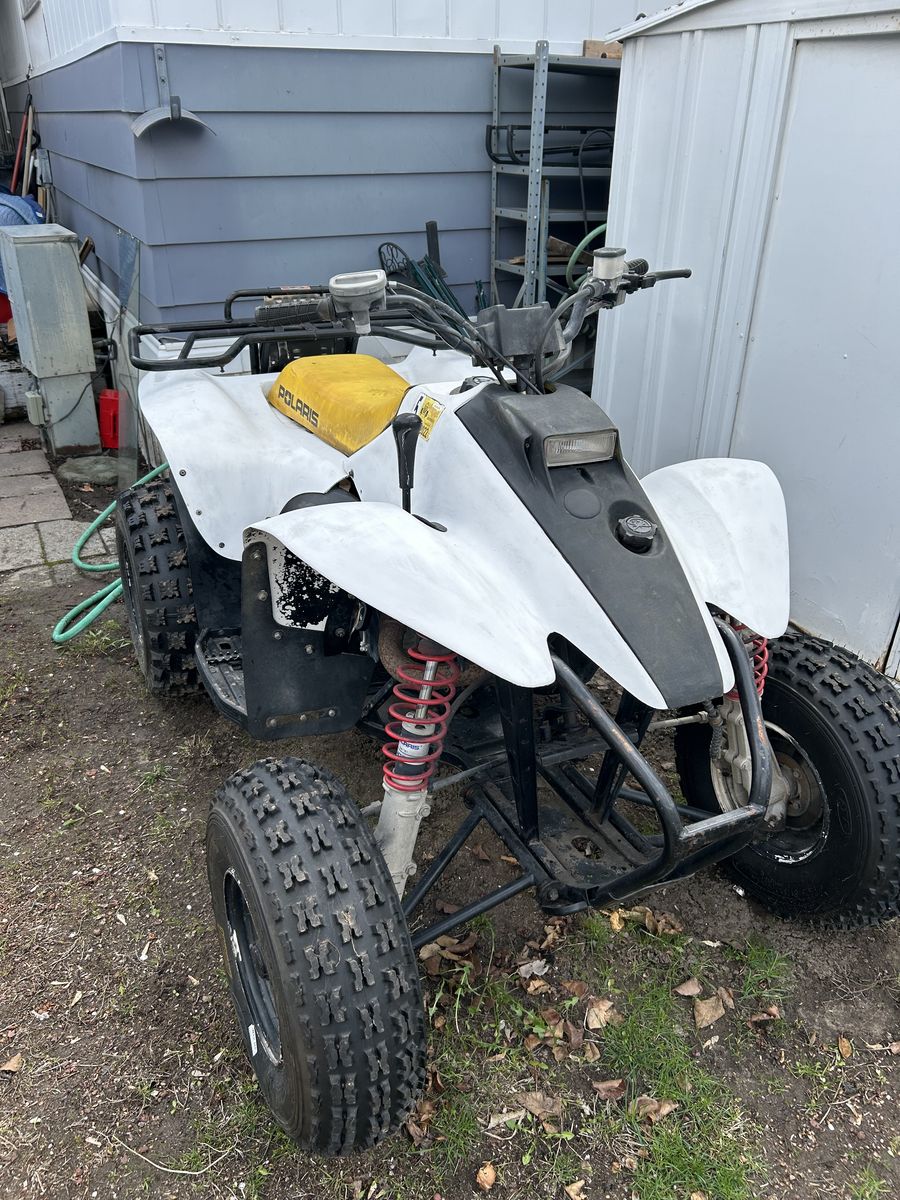 Great running atv last year I put new tires battery and chain only used it for ice fishing probably 8 miles on the new tires starts right up and idles good good plastics title in my name comes with a new set of ramps purchased same time as tires get it just in time for Easter weekend at the sand dunes