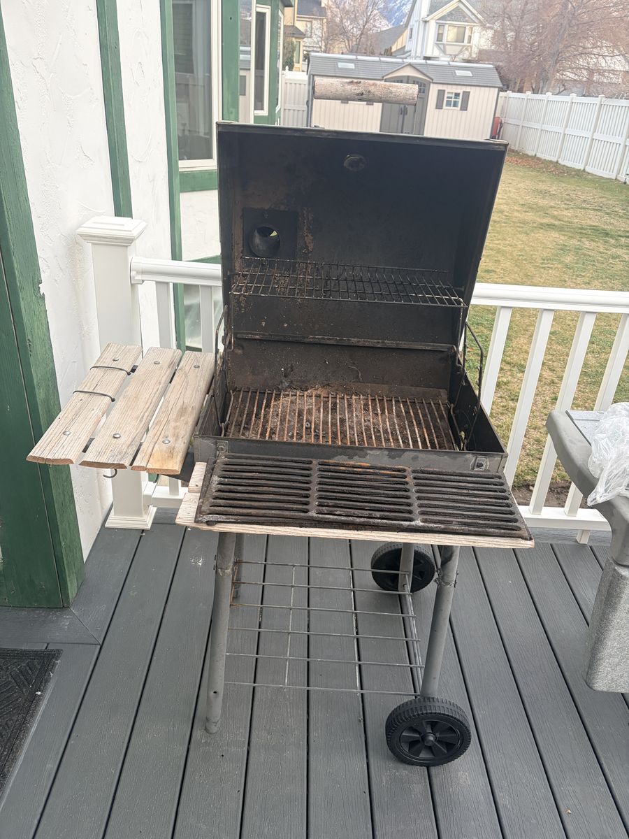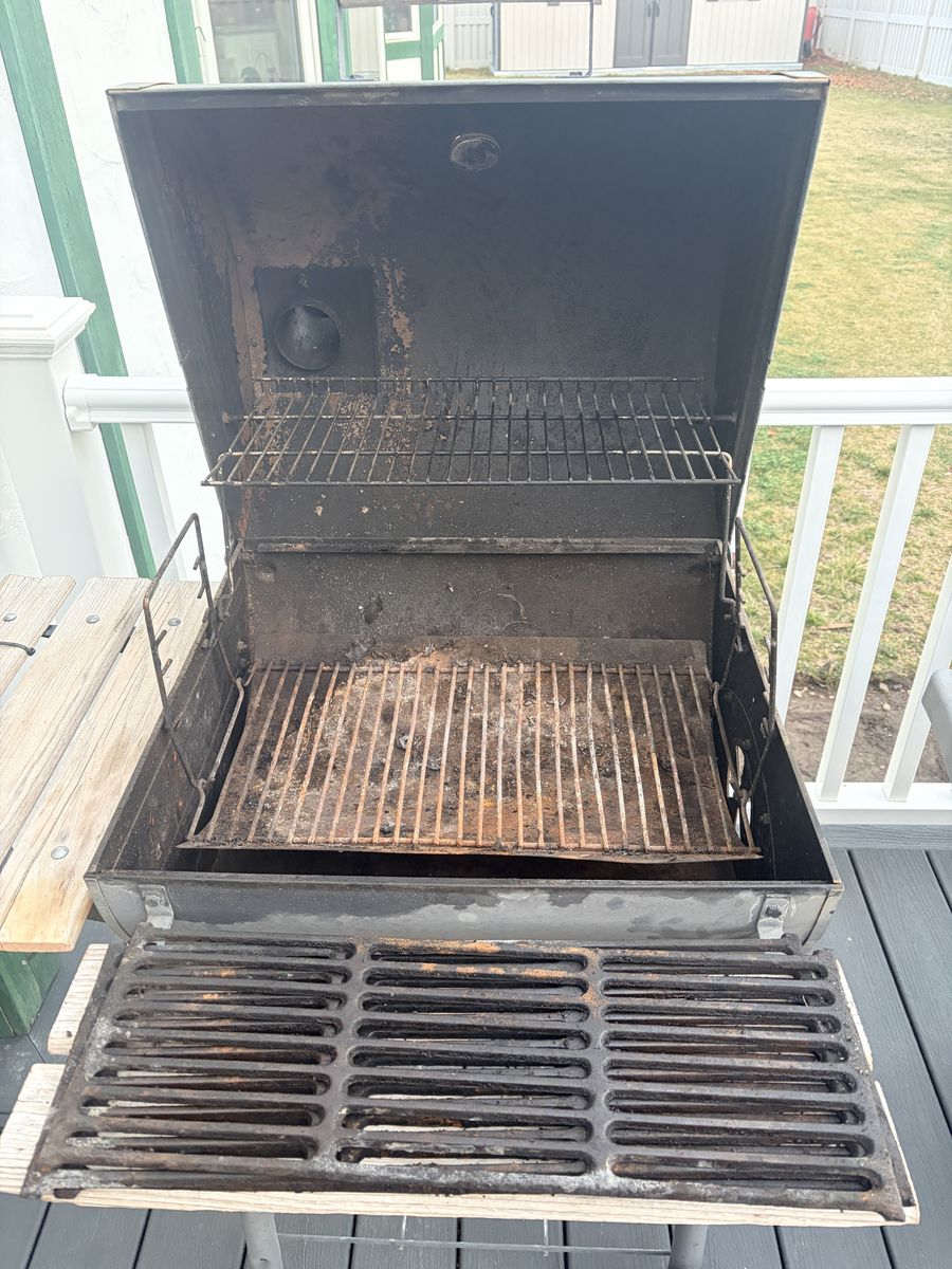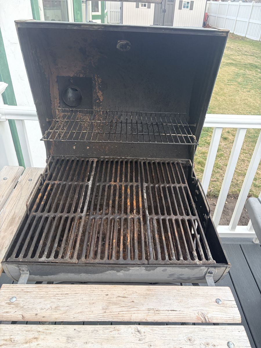 Grill works great for burgers, steaks, chicken, or smoking meats. It has some cosmetic rust from normal use but works perfectly.