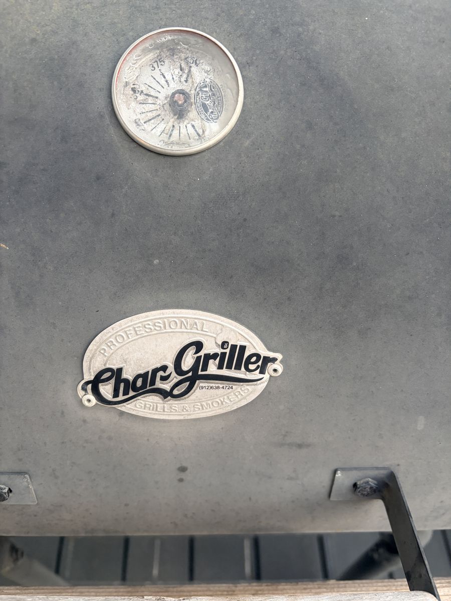 Char-Griller charcoal grill and smoker in good working condition. Solid steel construction with adjustable grates and built-in temperature gauge.