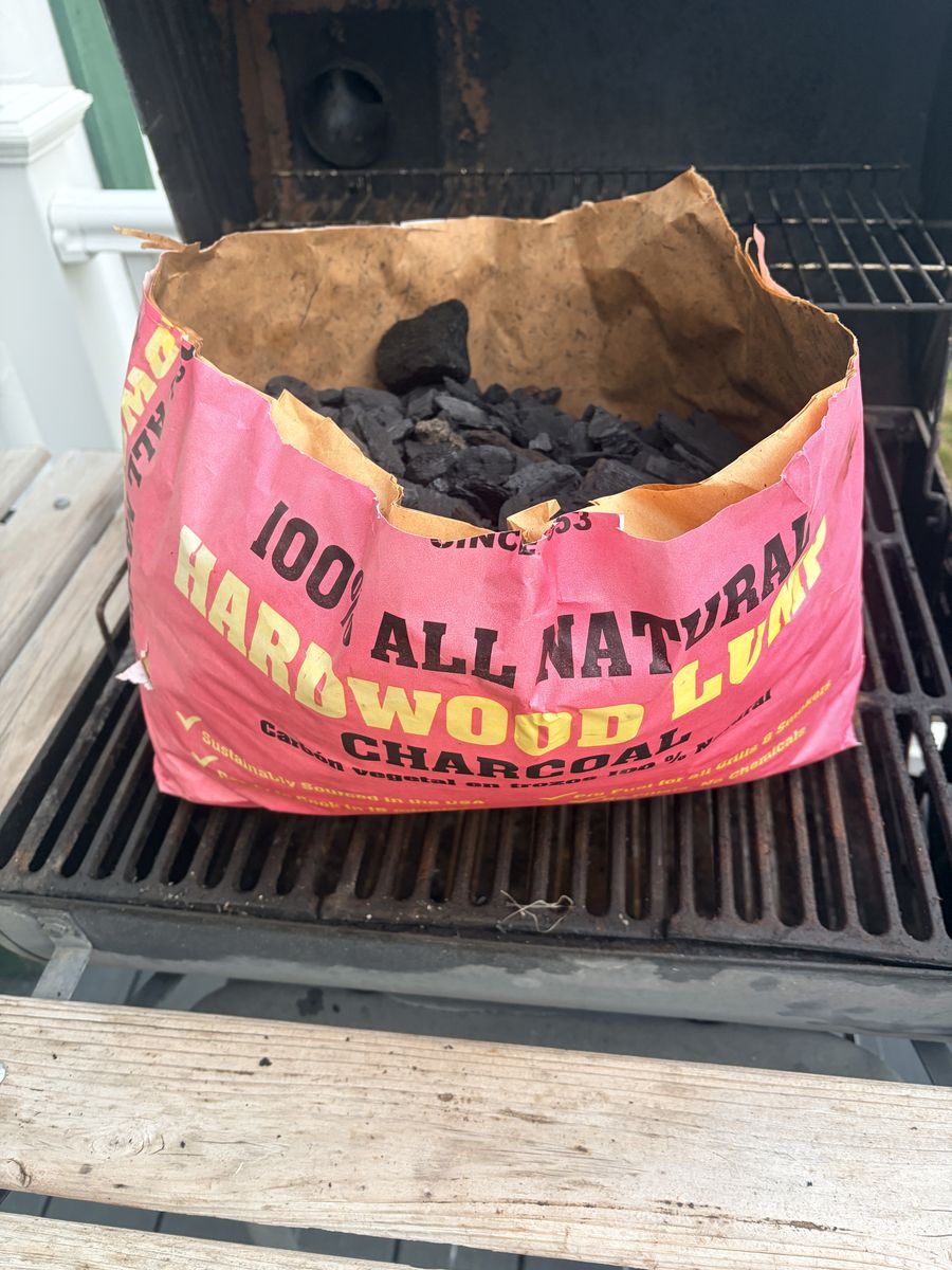 Includes a half bag of hardwood lump charcoal for free.