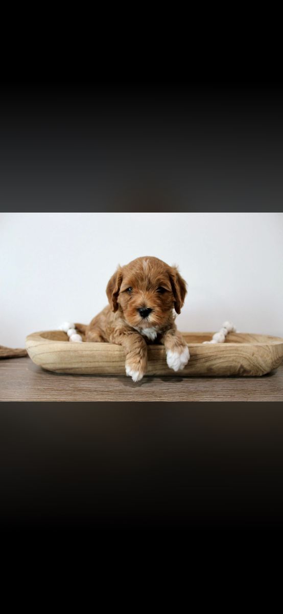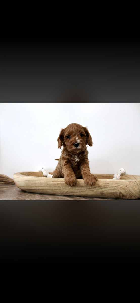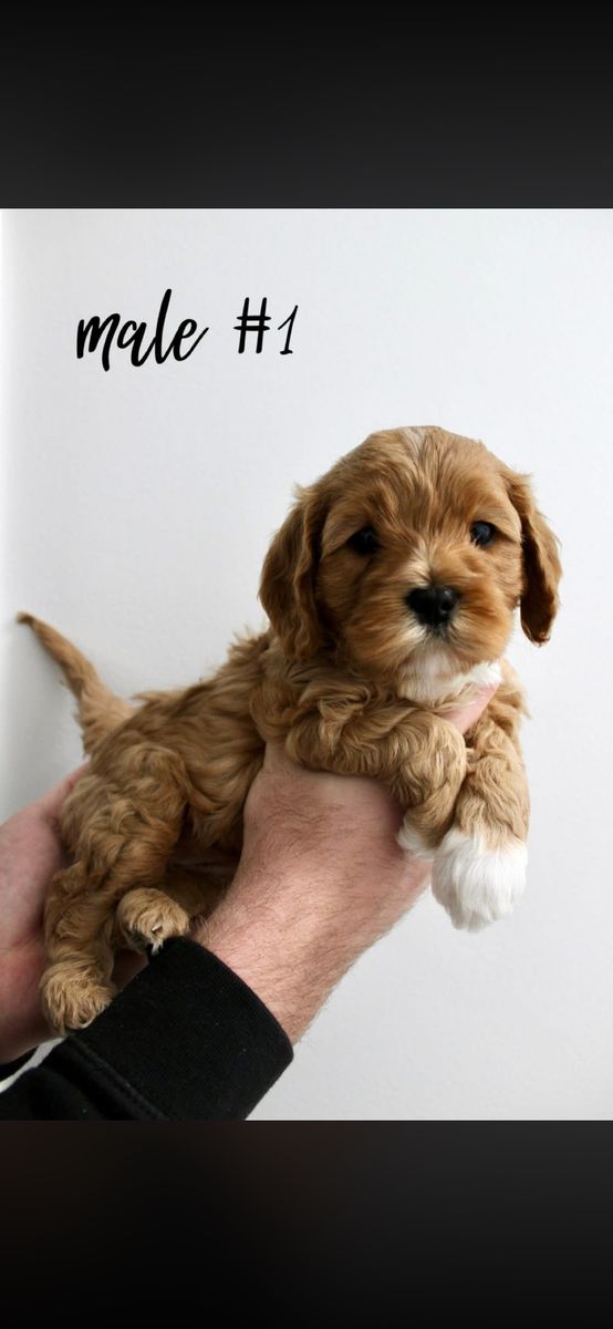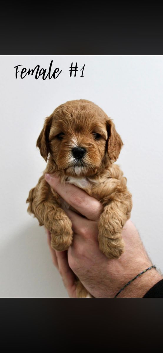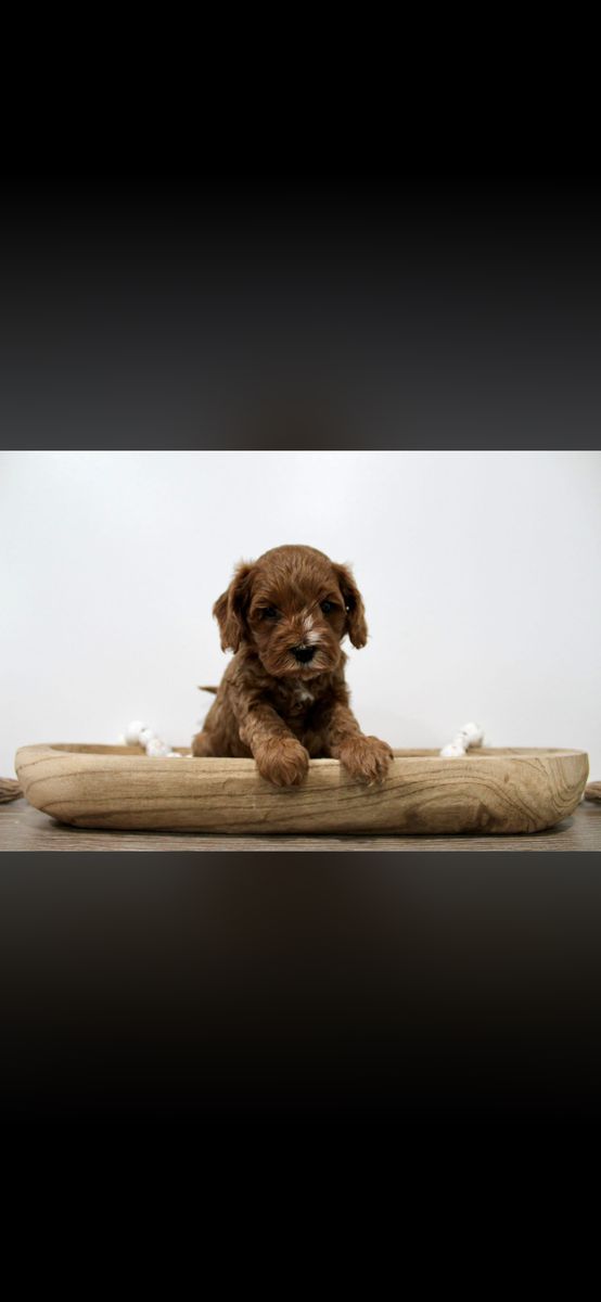 Hey everyone here are some updated pictures of our cute puppies! We have Cavapoo puppies, also known as Micro-Mini Goldendoodles! These are the best dogs! They are hypoallergenic, low-tempered, and kid friendly! They are the perfect family dog! They will weigh between 12-18 pounds! They will be ready to go March 24th! They will also have their first round of shots and dew claws out! We have two males and one female! Both mom and dad are pictured below! Message me for more details and if you are interested!