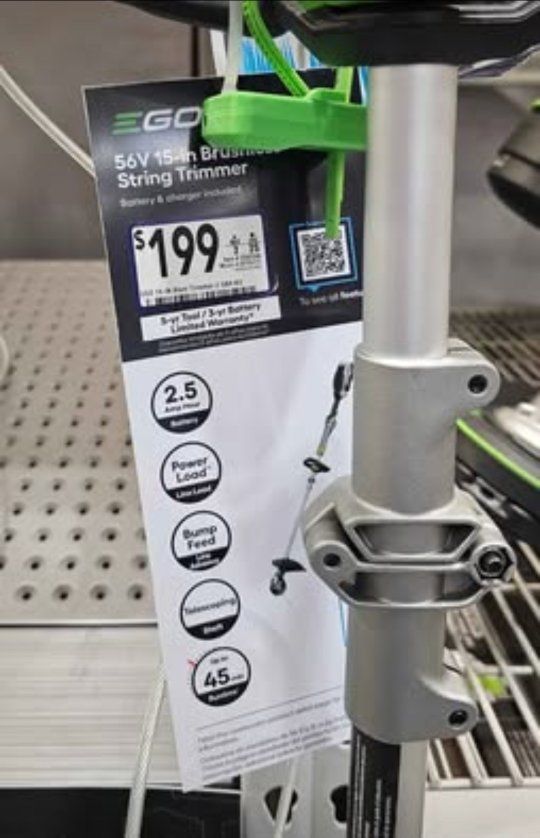 Brand new EGO 15-IN Alum Trimmer 2.5 amp hour battery and charger. Never been used in the box.