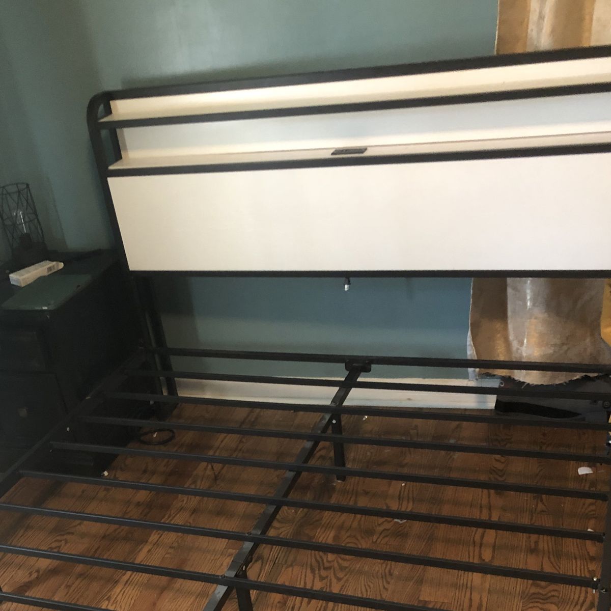 VenmoWhite and black metal bed frame size queen