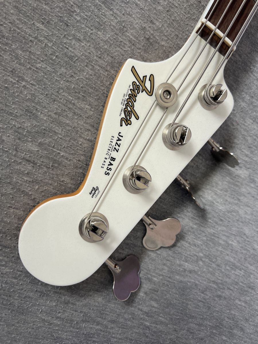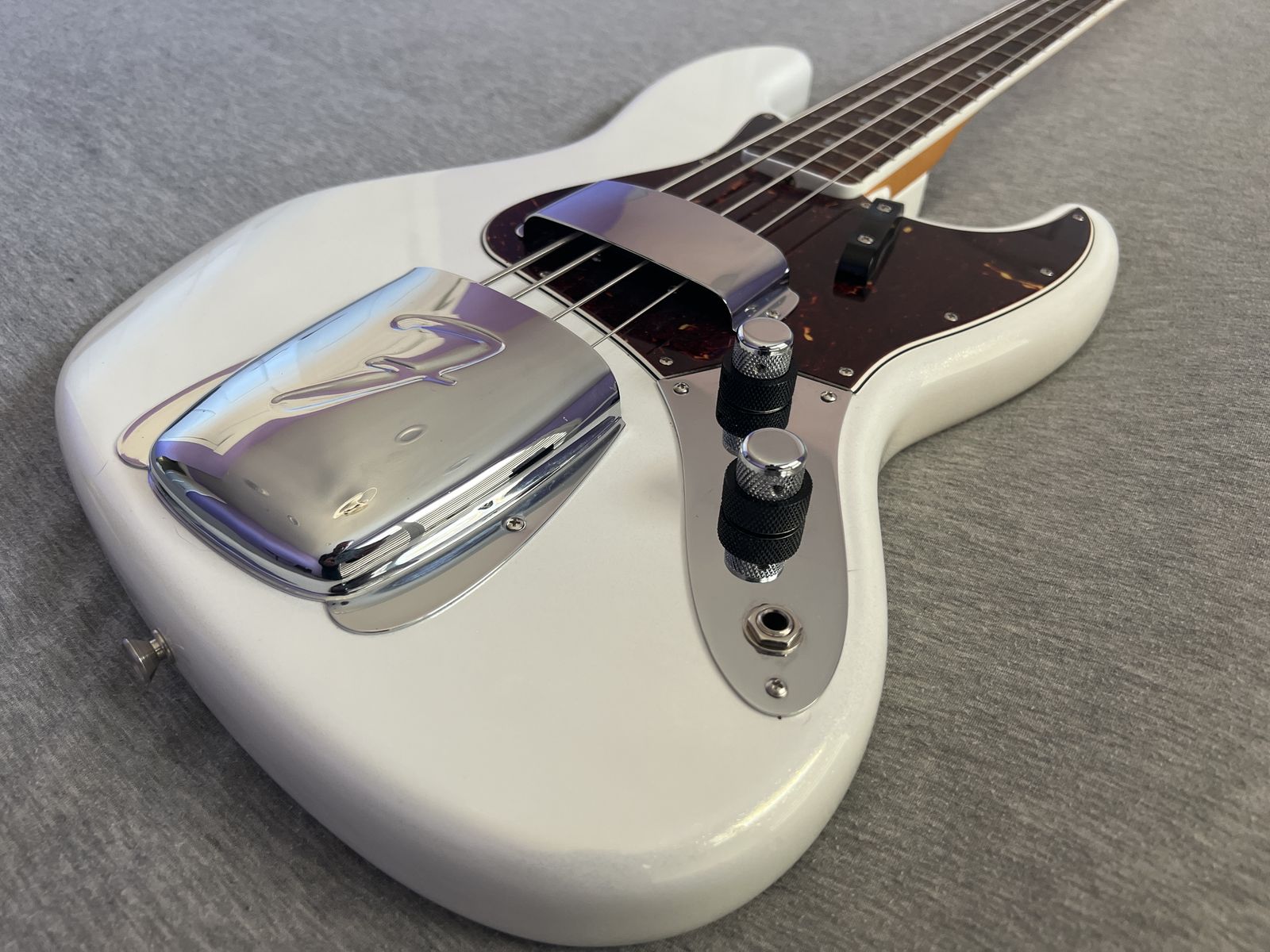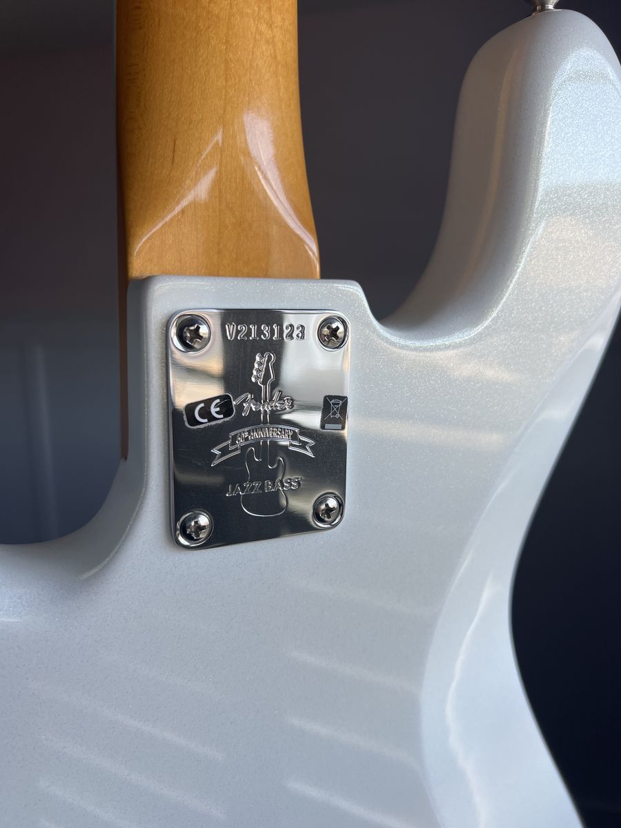 ZelleThe Fender 60th Anniversary Jazz Bass is a limited-edition instrument celebrating the iconic Jazz Bass. It features a lacquer finish in Arctic Pearl, a tortoiseshell pickguard, an alder body, and pure vintage '62 pickups. It also has a maple neck with a rosewood fingerboard, bone nut, and vintage-style frets.