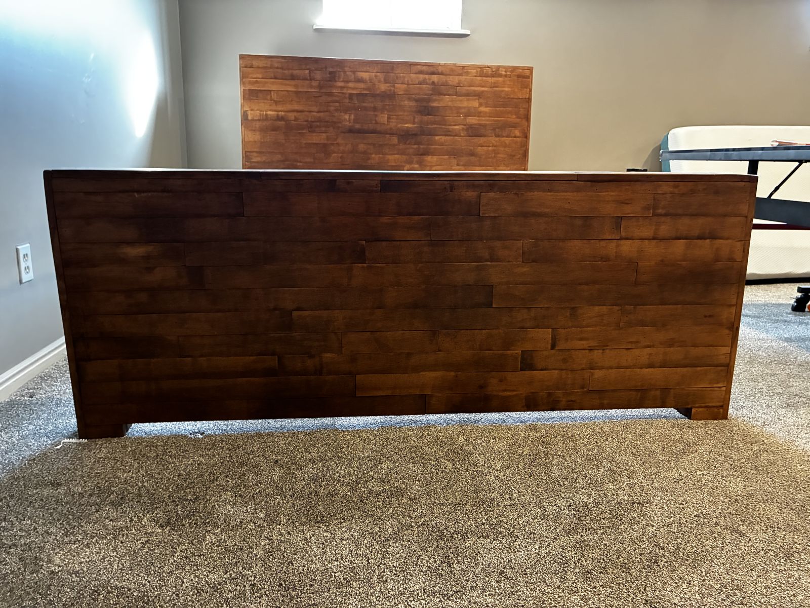 I bought this from a guy who built it from the gym floor of his high school. It pretty cool and incredibly solid. Ended up never using it because we never switched to a queen. Just trying to free up space now.
