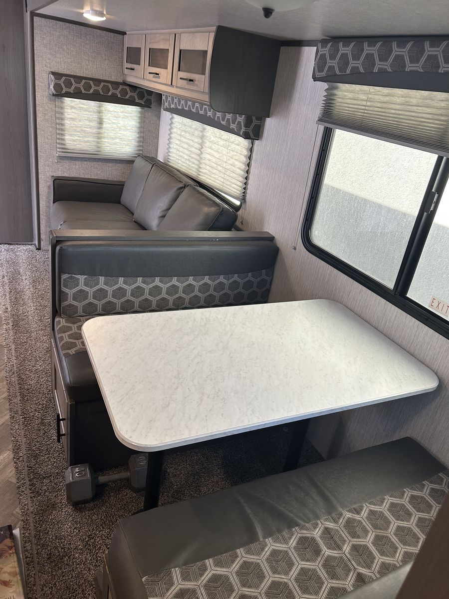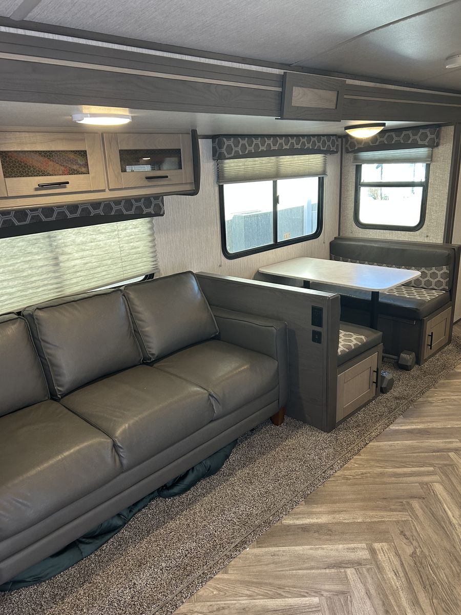 2021 ShadowCruiser Trailer 260 RBS. We purchased the Paris RV warrantee with 2 years left which is transferrable. Length: 32.8’. New tires with less than 1 year of use, less than 1000 miles on them. Brand new Marine batteries less than 1 years old. Table bed with pull out couch bed (queen size). Sleeps 6 comfortably. We could fit 2 kids on the table bed. Master has queen size bed. Bathroom is larger than most trailers. Solar capable.