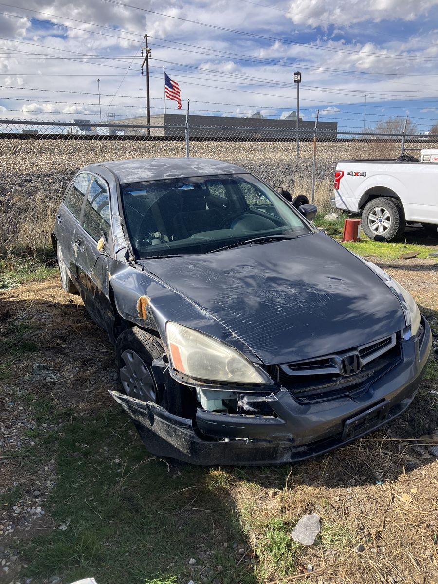 2003 Honda accord This is a wrecked vehicle. I do not know it’s history. I do have a key It runs and drives. But has a fuel leak. I do not know how many miles it has. the battery is dead Exterior is obviously damaged Interior is great It has 3 decent tires one tire is destroyed I will not part it out Clean clear title