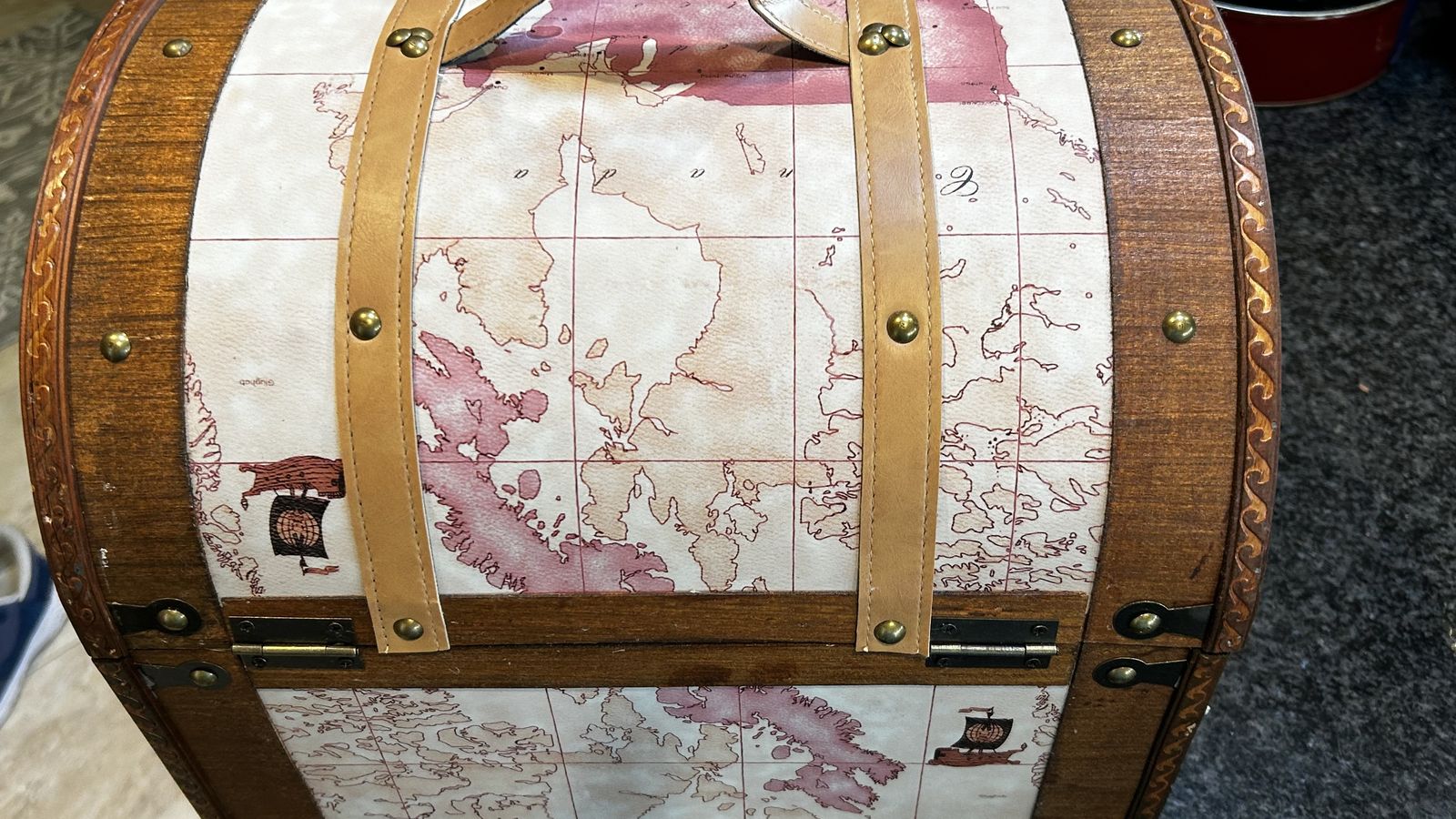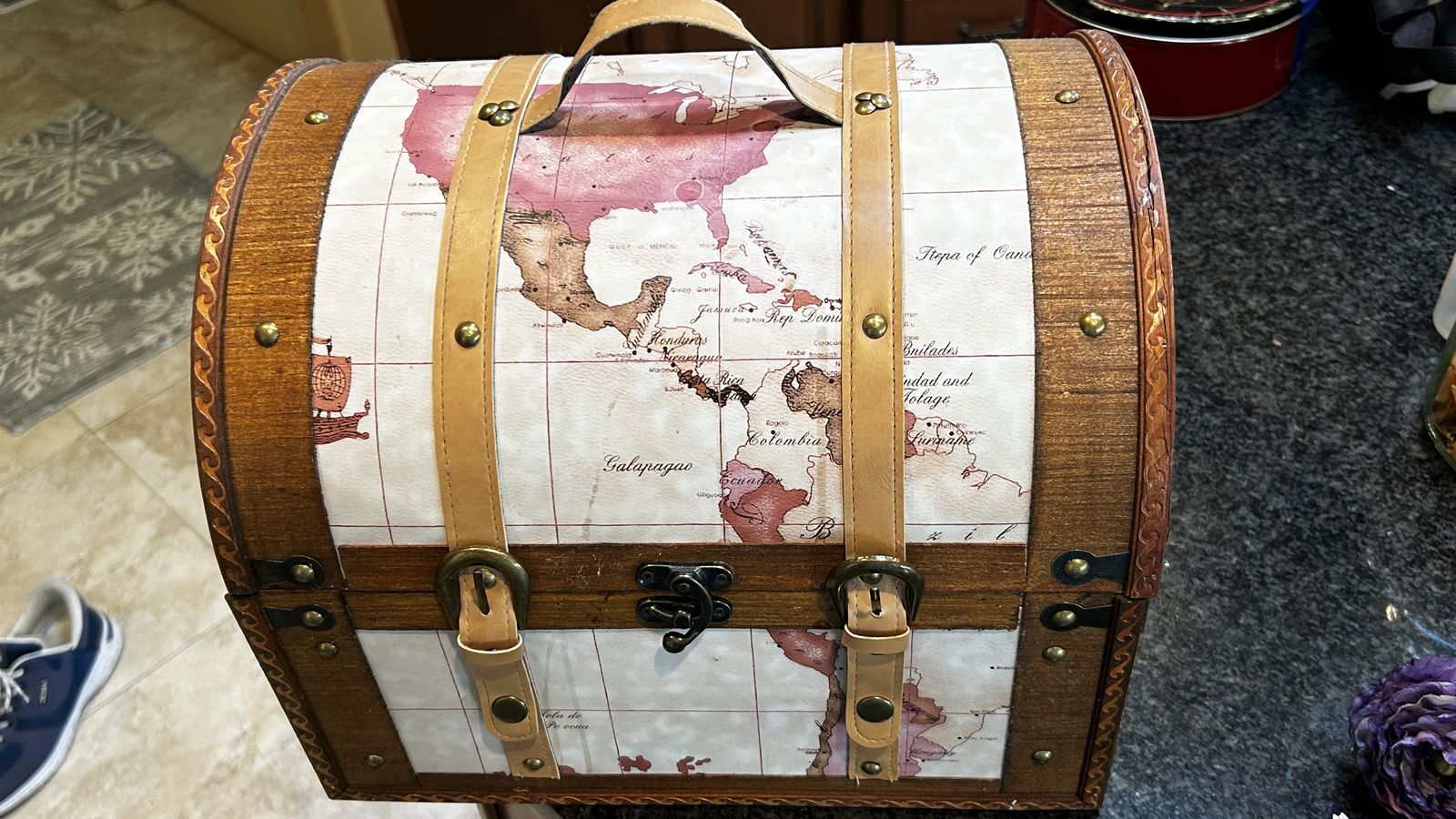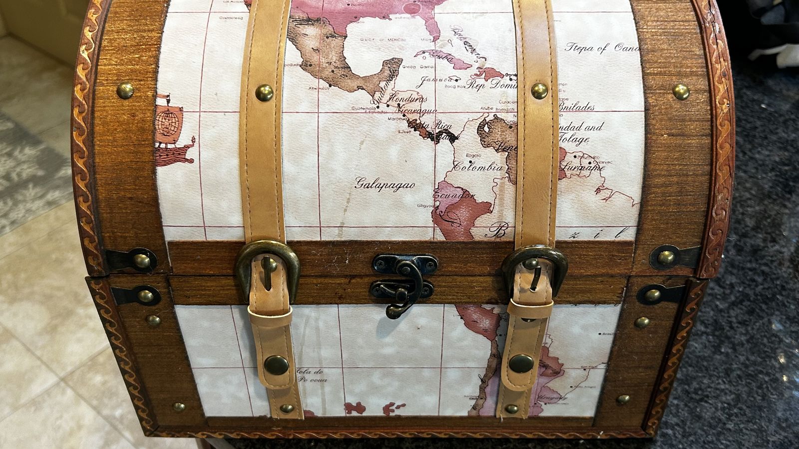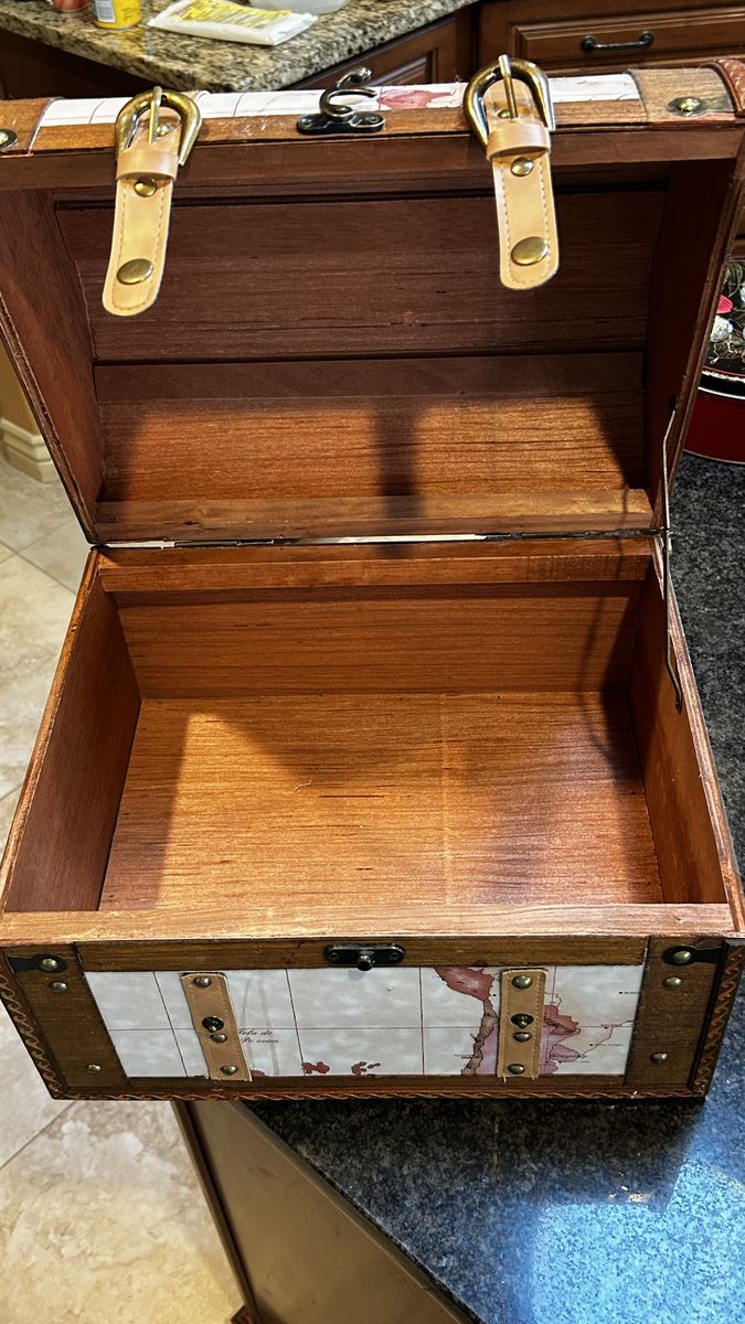 This is an amazing fun vintage Leather Map treasure Chest Storage Box - ready for fun adventures and memories!!! Measures 15” wide x 11” tall x 11.5” deep. Cash at pick up in Highland, UT.