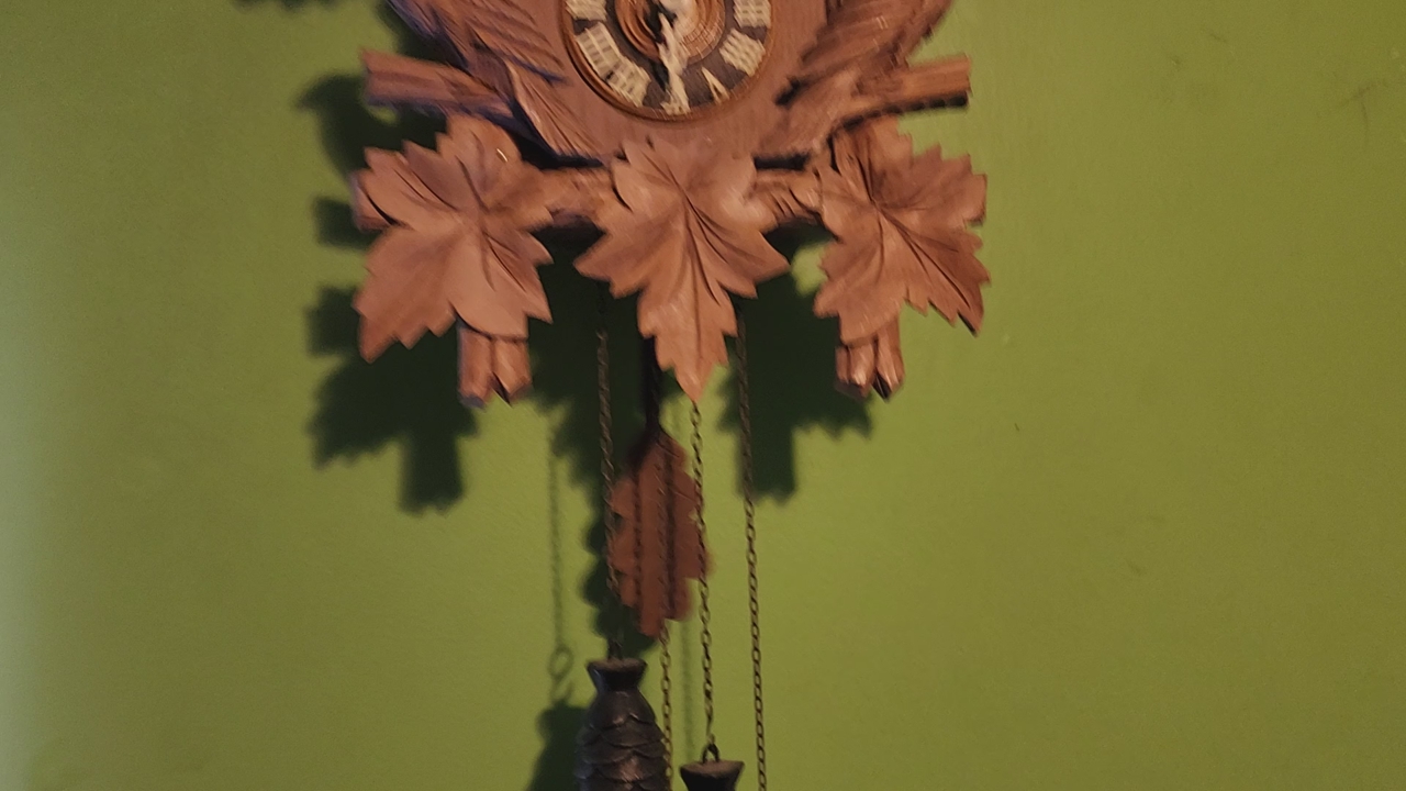This clock runs great I rebuilt the entire front part so there are signs of rebuild 1968 German Cuckoo nice pu in Ogden please, I do like to haggle, also It has been serviced by me oil and cleaned good to go till next sevice