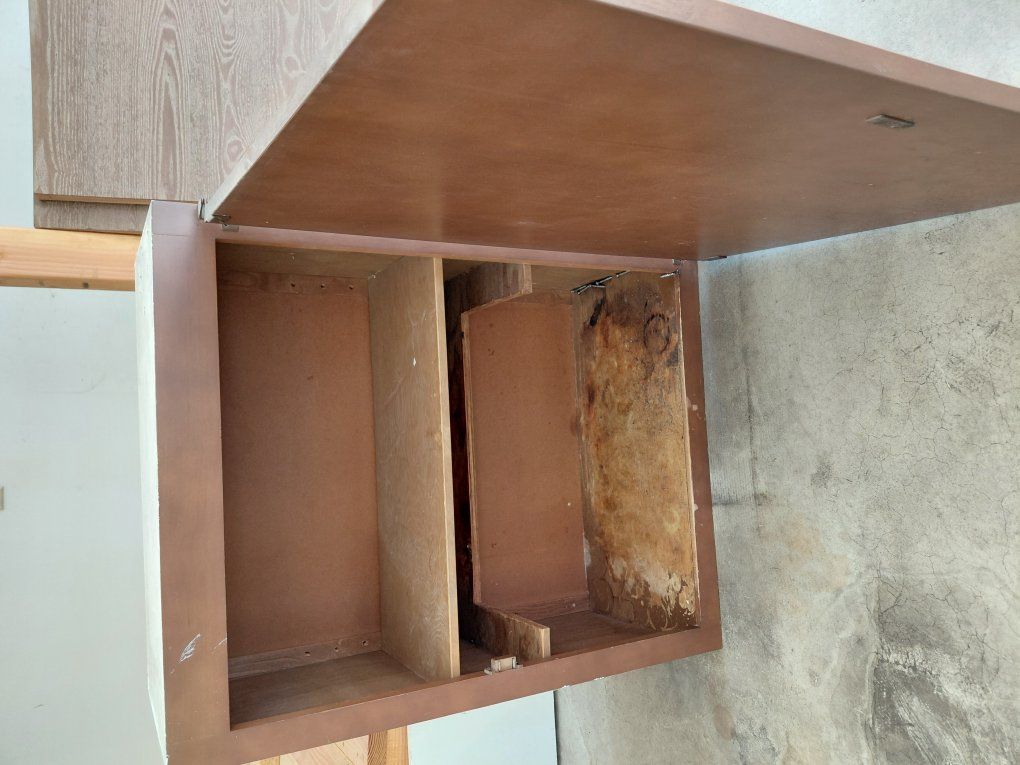 Old laundry room cabinet, 24 inches wide, 30 inches tall, 12 3/8 inches deep.
