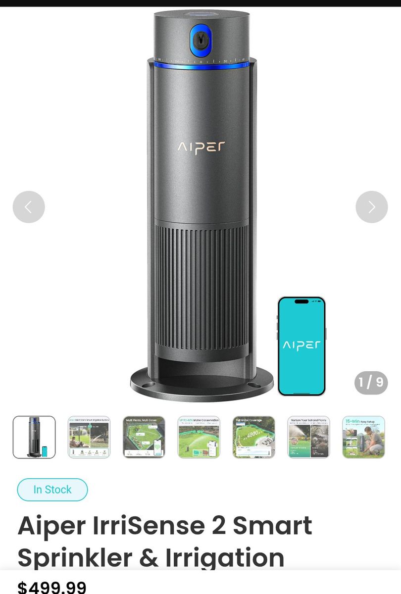 VenmoBrand new upgraded version Aiper Irrisense 2 Smart irrigation sprinkler. This has just been released as of a week ago. Ultra smart irrigation sprinkler that is controlled from your phone and custom waters your lawn and plants based on how you map it out in the app so it only waters what you want it to therefore reducing water usage by 40 percent. Details are in the pictures. Retails for $500. Asking $415. Text if interested 801-903-8337
