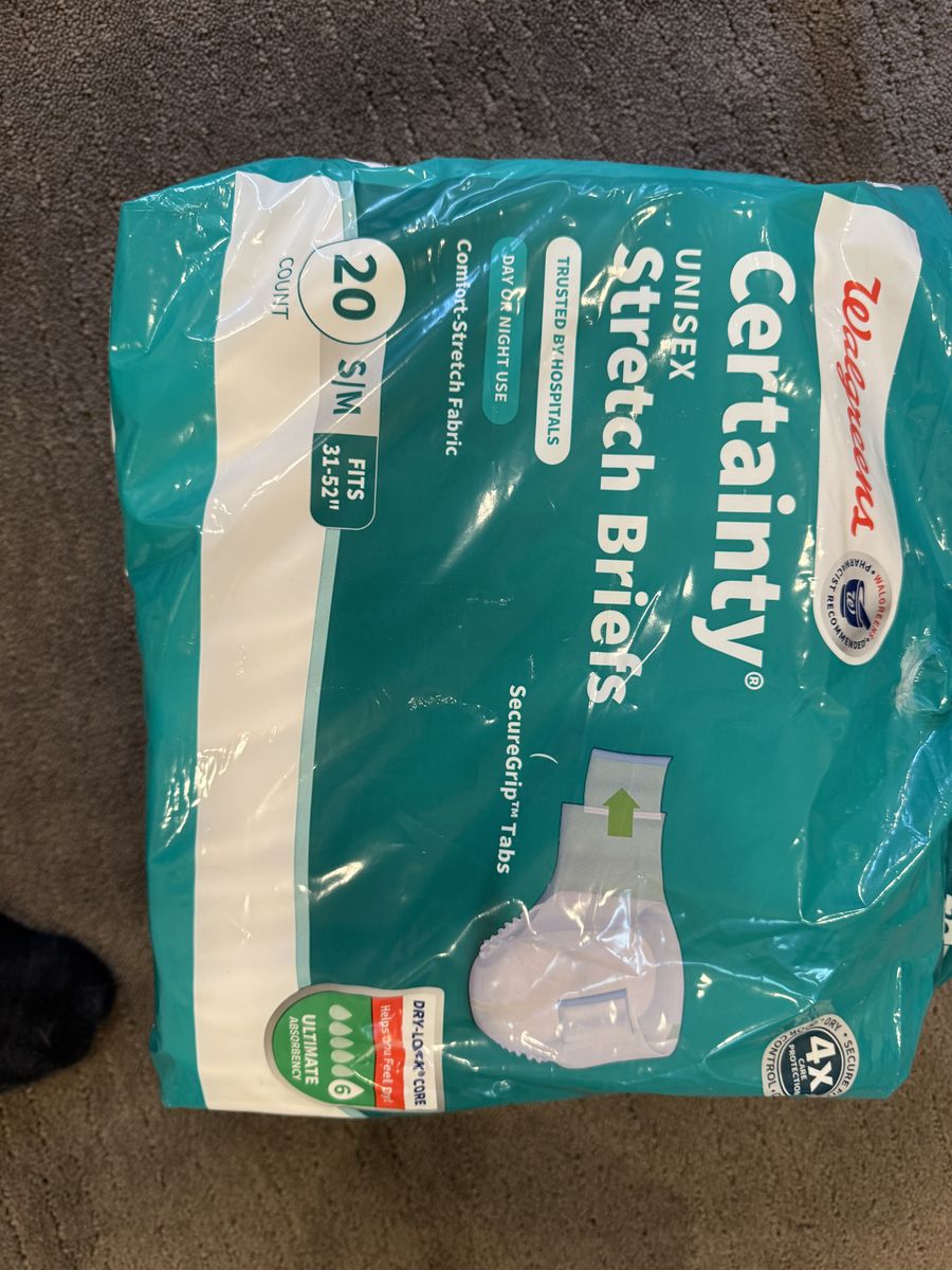 Free incontinence supplies. New unopened Fit Right Briefs medium, opened but untouched Walgreens stretch briefs s/m. 2 unopened bags of 30x30 underpads and 1 bag opened but not used underpads. Unopened wet wipes, ready bath shampoo caps etc.