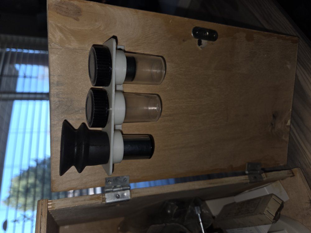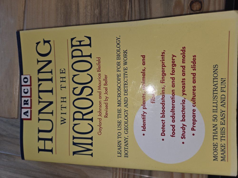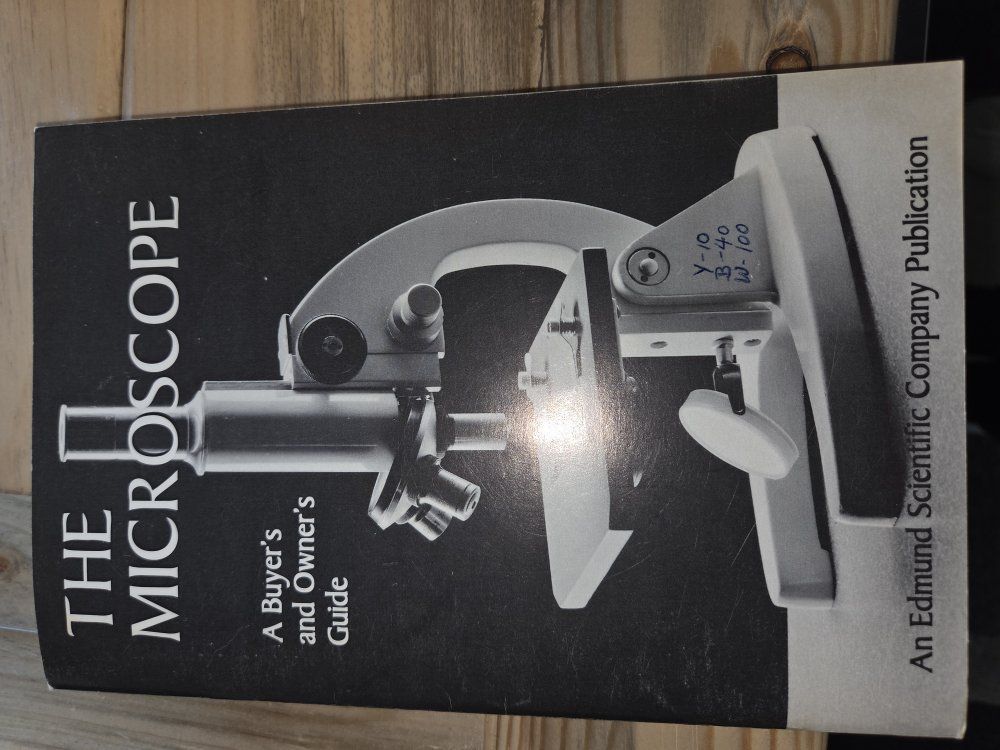 Edmund Scientific Microscope with original manual and box. Several boxes of slides and micro slides. An additional book Hunting with the Microscope also included.