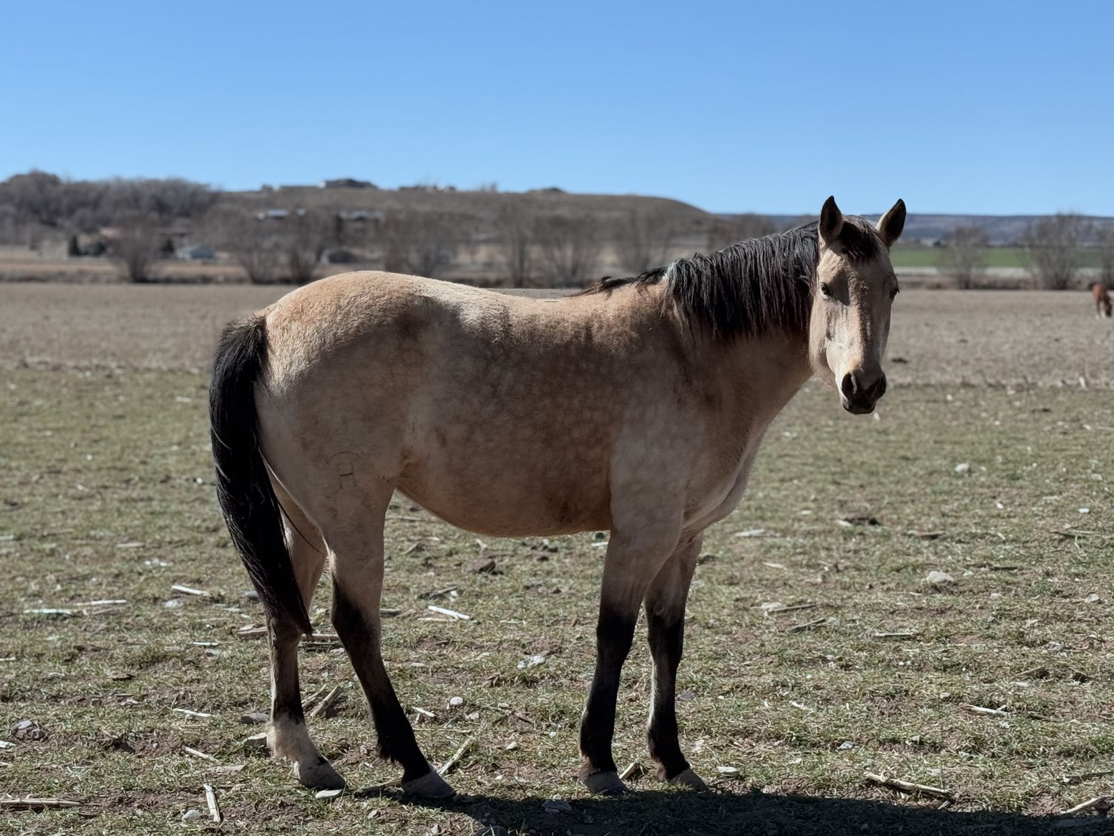 AQHA 2025 Colt. He is halter broke, picks up all four feet and ties. He is very friendly and gentle nothing seems to bother him. Both parents are pictured as well. I expect him to mature close to 16h.