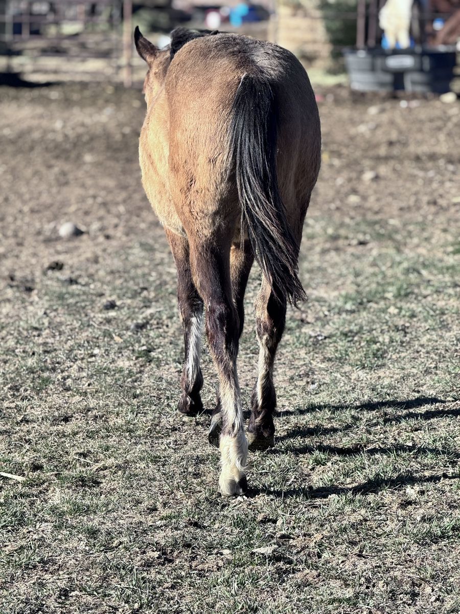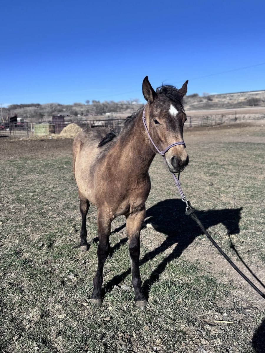 2025 AQHA Colt. Halter broke, ties, and picks up all four feet. Youth prospect he’s very gentle and loves people. Should mature to 15h and be stout. Nice reining/cowhorse bloodlines with foundation on the bottom. Papers in hand.
