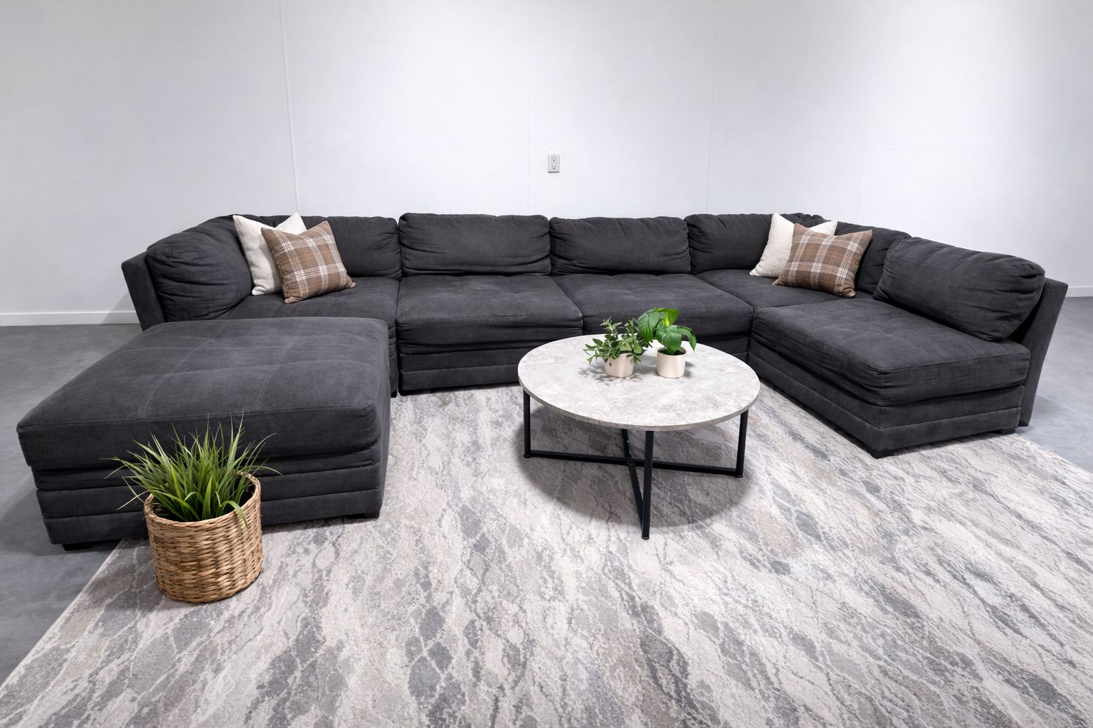 VenmoSelling this modern fabric sectional that comes in 6 pieces. All pieces are modular and can be configured to fit any living space. Features locking mechanisms underneath each piece to connect them to each other & avoid sliding.