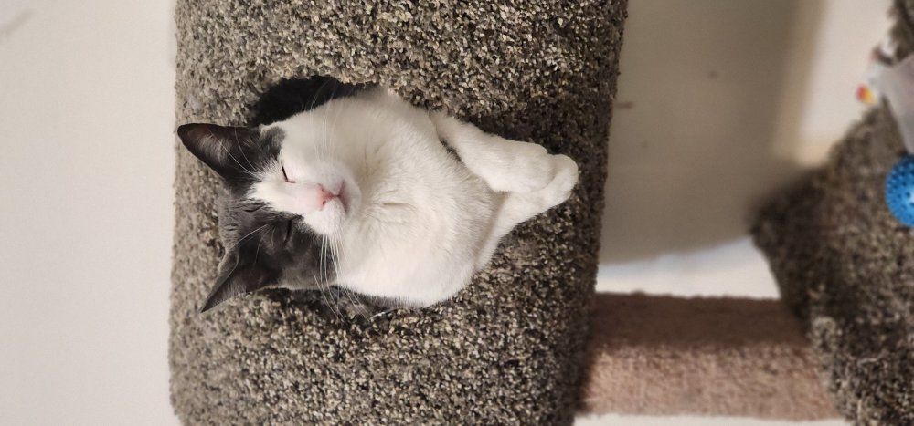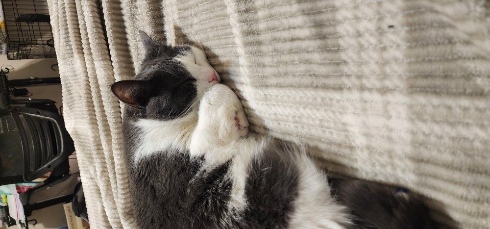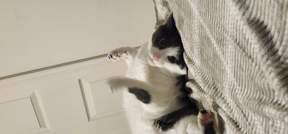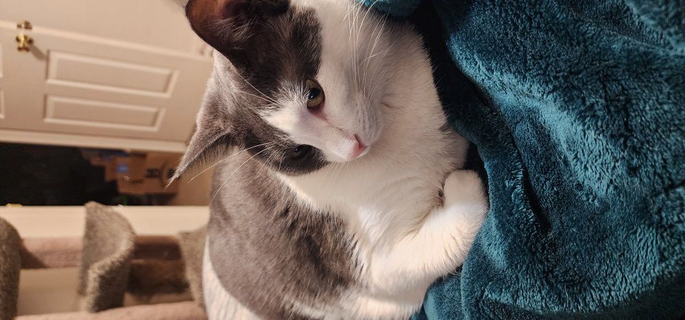 Atlas is a 2 year old tuxedo. He is a chunky boy that is one of the sweetest cats I've ever known. he's pretty shy and a little jumpy around loud people, but loves to sleep and cuddle.