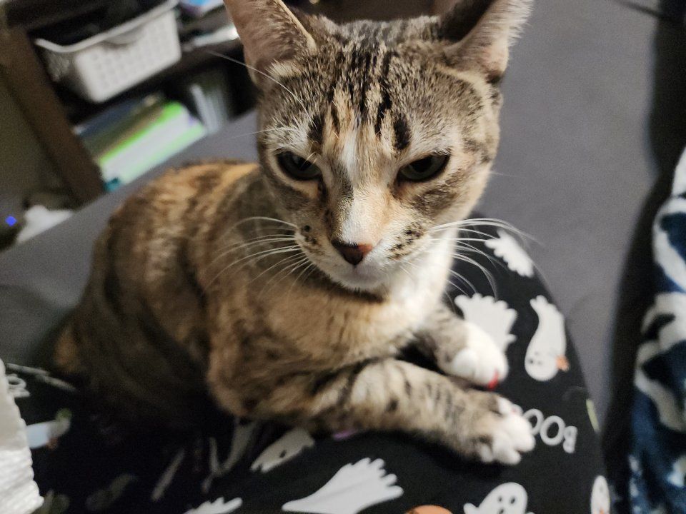 Sally is a small 4 year old female tabby. She is sassy and loves to cuddle once she gets used to you.