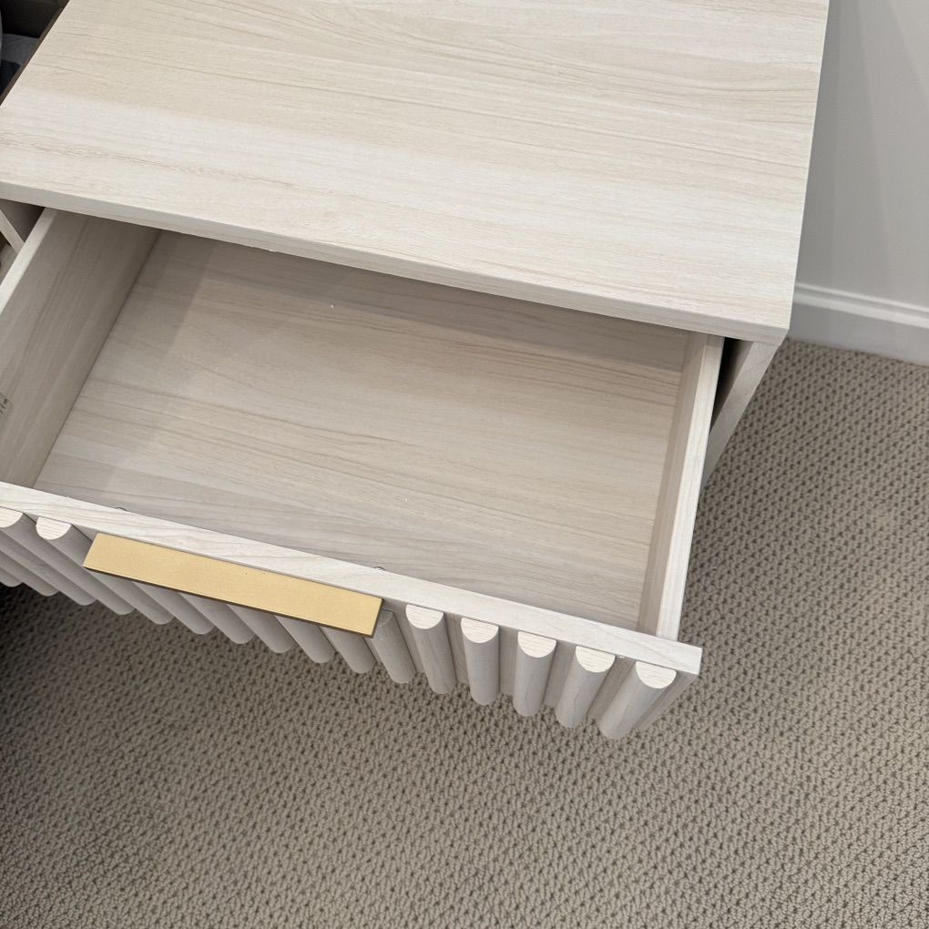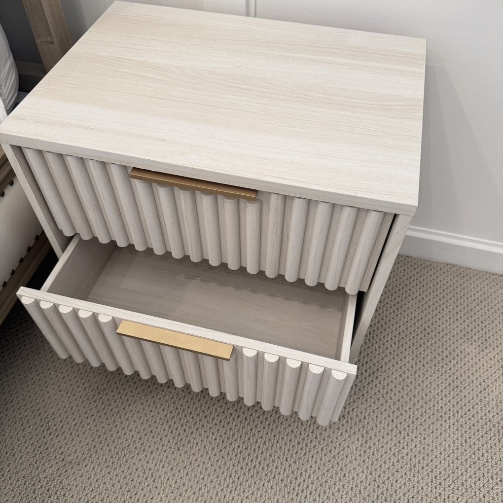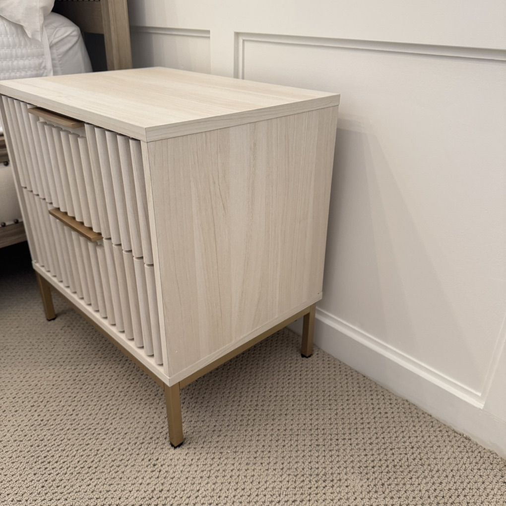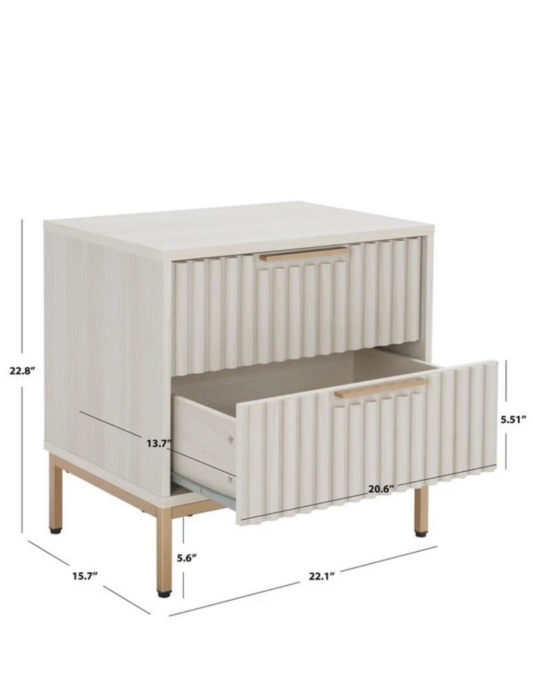 Give a sleek and modern edge to your bedroom with our Lylia 2 drawer nightstand. The clean-lined and low profile of our nightstand is enlivened with the lively textures of bleached white veneer. Modern and versatile our nightstand charms with a beautiful fluted detail upon the facade. Our functional and stylish nightstand provides convenient storage for all your bedside essentials.