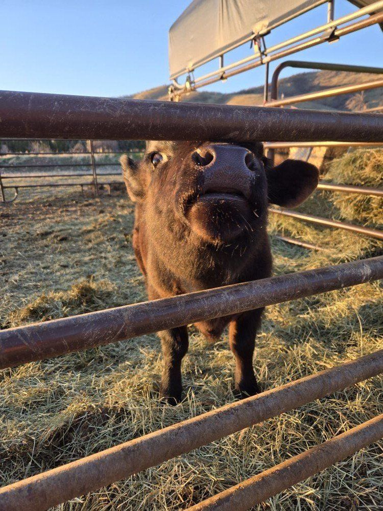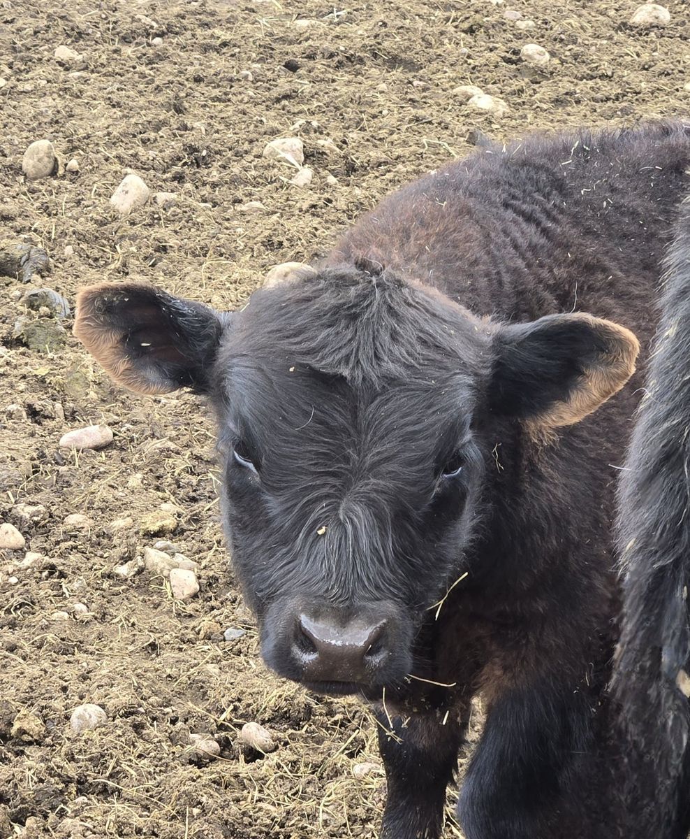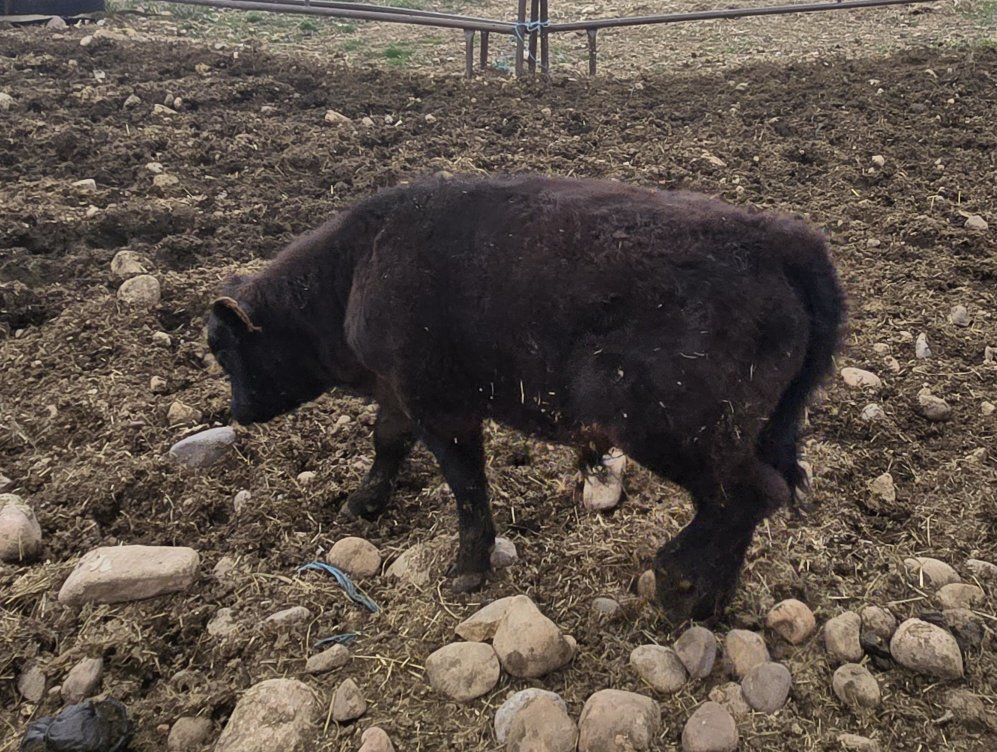 Very small, 5 month old, mini Angus (Aberdeen) Mini Hereford Bull. Mother is registered Aberdeen. Calf could be registered. Very friendly but not tame. Would be a cuddle bug with some attention. Need to make room for upcoming calves.