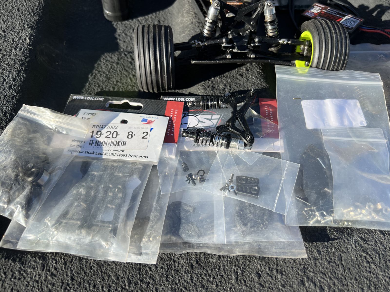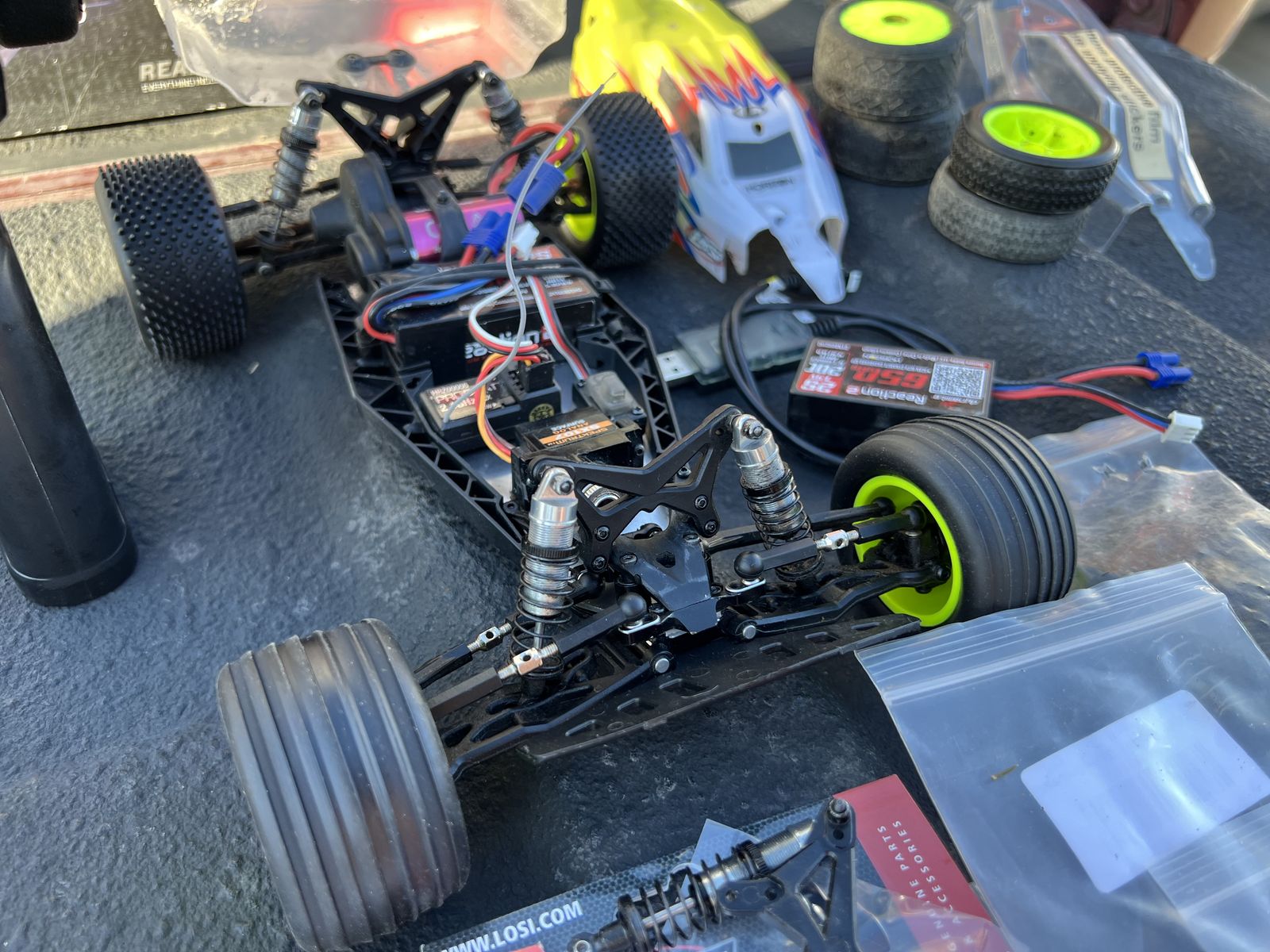VenmoThis has been a super sweet car. Comes with everything to run today. Snappy fast, extremely responsive. This has brushless electronics. I had a stock mini b, and upgraded the motor. Decided to take it further and put the electronics on a fresh pro roller. Only have two batts through it since the swap. Lots of extra parts (see pics) Upgraded the an arms to RPM. Being a smaller scale it needed the more durable parts. Selling to thin the collection and pay some bills. Brushless version- Retails $229 - Thanks