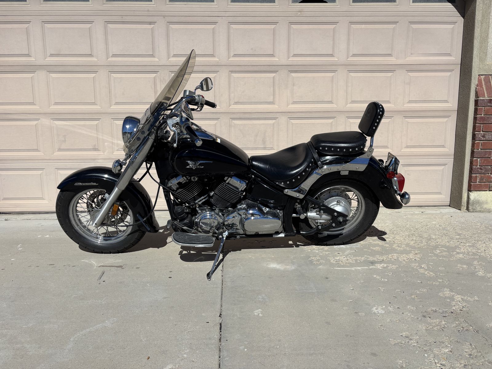 Bike is in great shape! Runs and starts like a dream. Tires in great shape. 25k miles. Never been laid down. No tears in the seat. Comes with rain gear and battery tender. Slow oil drip. One dent on rear fender.