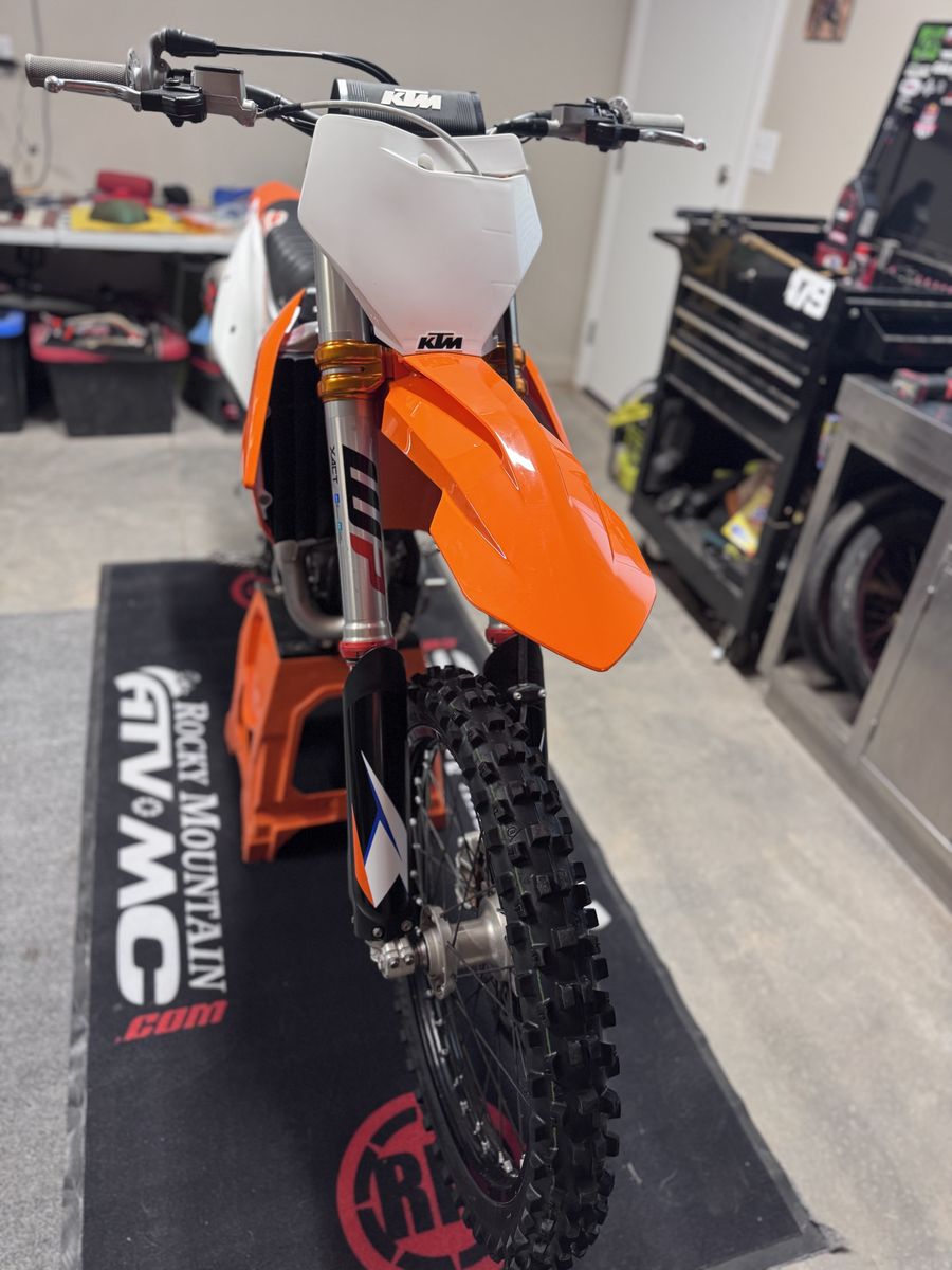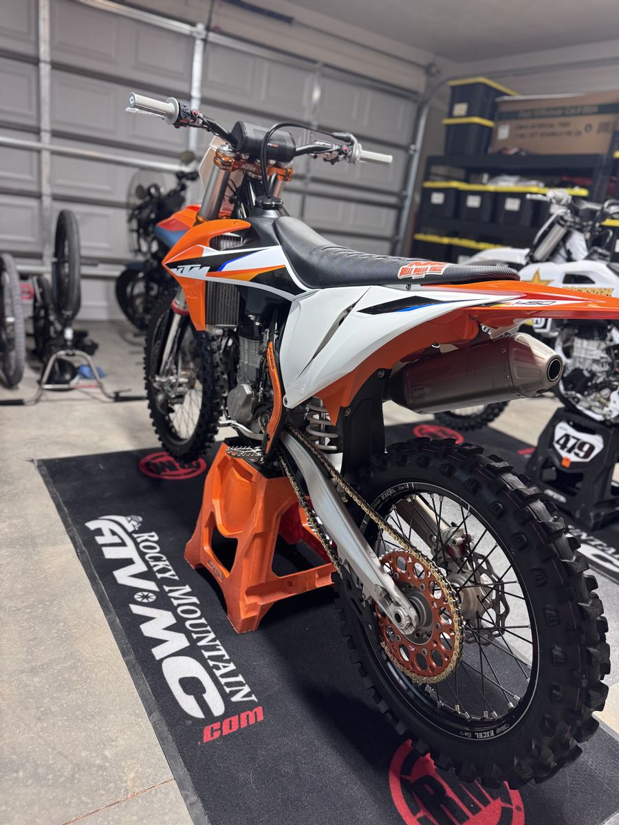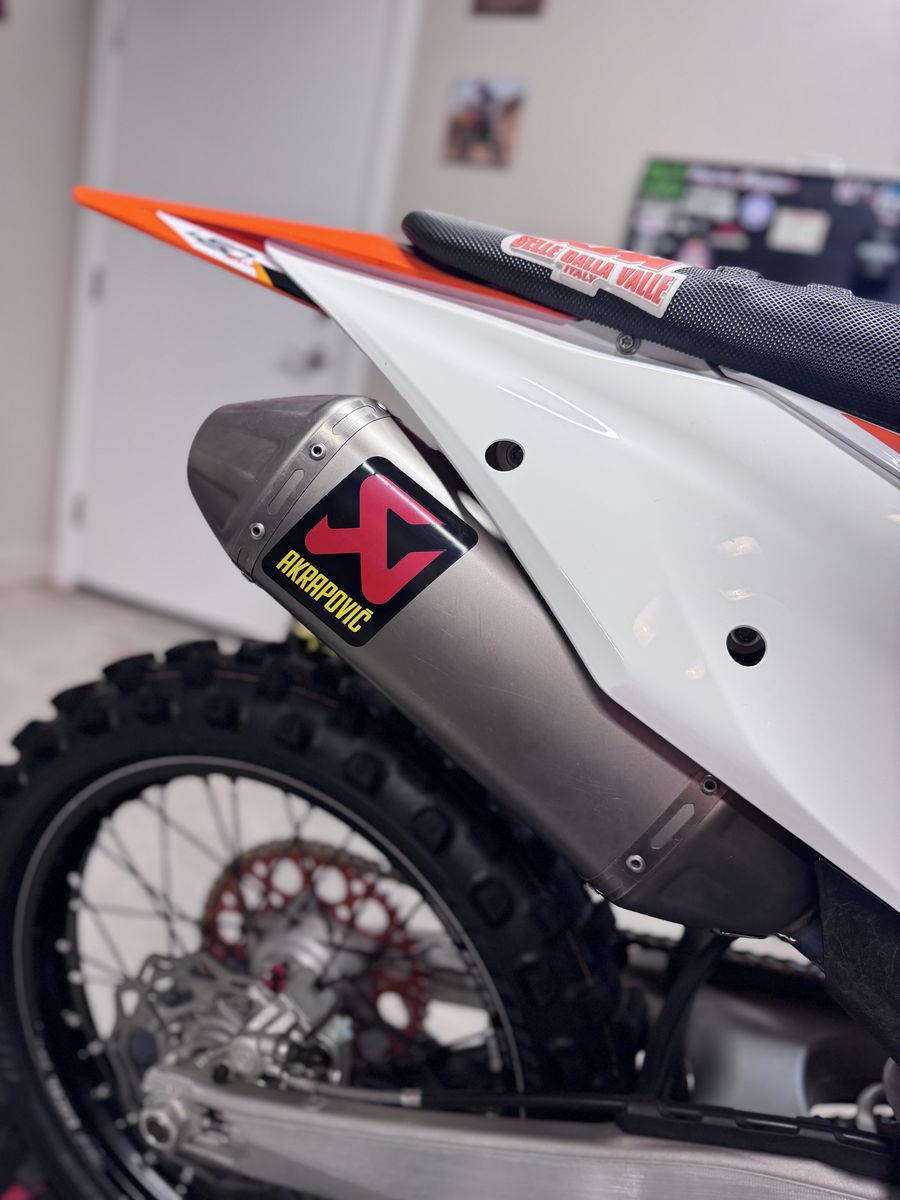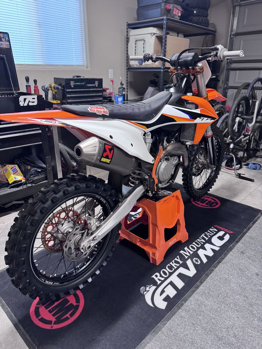 2021 ktm 450sxf, original owner, factory ktm triple clamps seat cover , Akrapovic slip on exhaust, lightly used renthal sprocket and gold D.I.D chain less than 10 hours on chain and sprocket. I’ve absolutely loved this bike but it has just been sitting in my garage since I bought a another one. Vet ridden, oil, and filter changed every 2 rides, air filter changed every single ride. I have the stock triple clamps and exhaust to go with it. Very clean bike for the year. Has 120 hours on it. Asking $6,500 OBO Call or text anytime for more info 385-777-6166