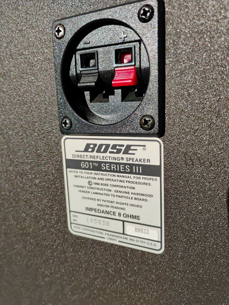 VenmoBeautiful set of the highly sought after Bose 601s. from 1986. All original, in great condition, sounds great. Genuine Hardwood Veneer. No broken cover clips or pushed in dust covers. Have been very well taken care of. Size 30 tall 12.25 wide 12.75 deep. two 8 inch woofers and four 3 inch tweeters per speaker. see all pics. Also have some 301 series II for $175 a pair if you're interested. No low Ball offer's will be considered. And of course no scammers.