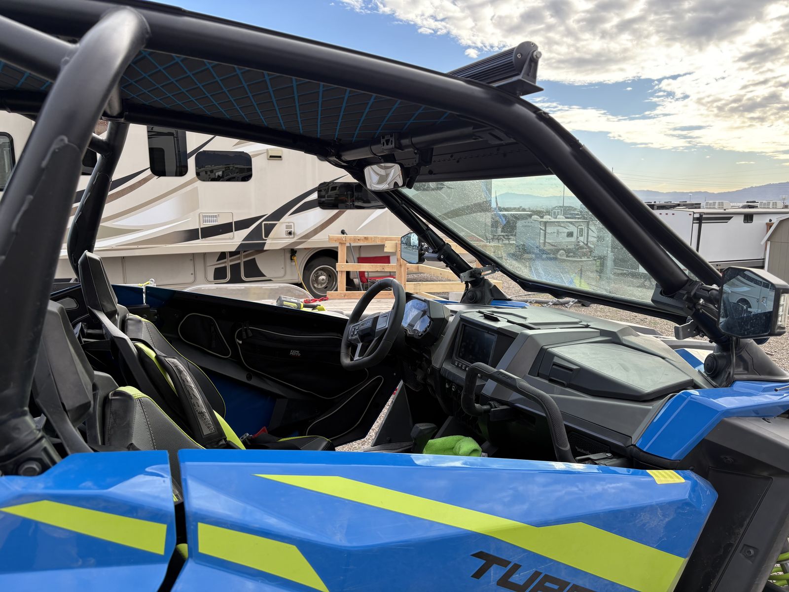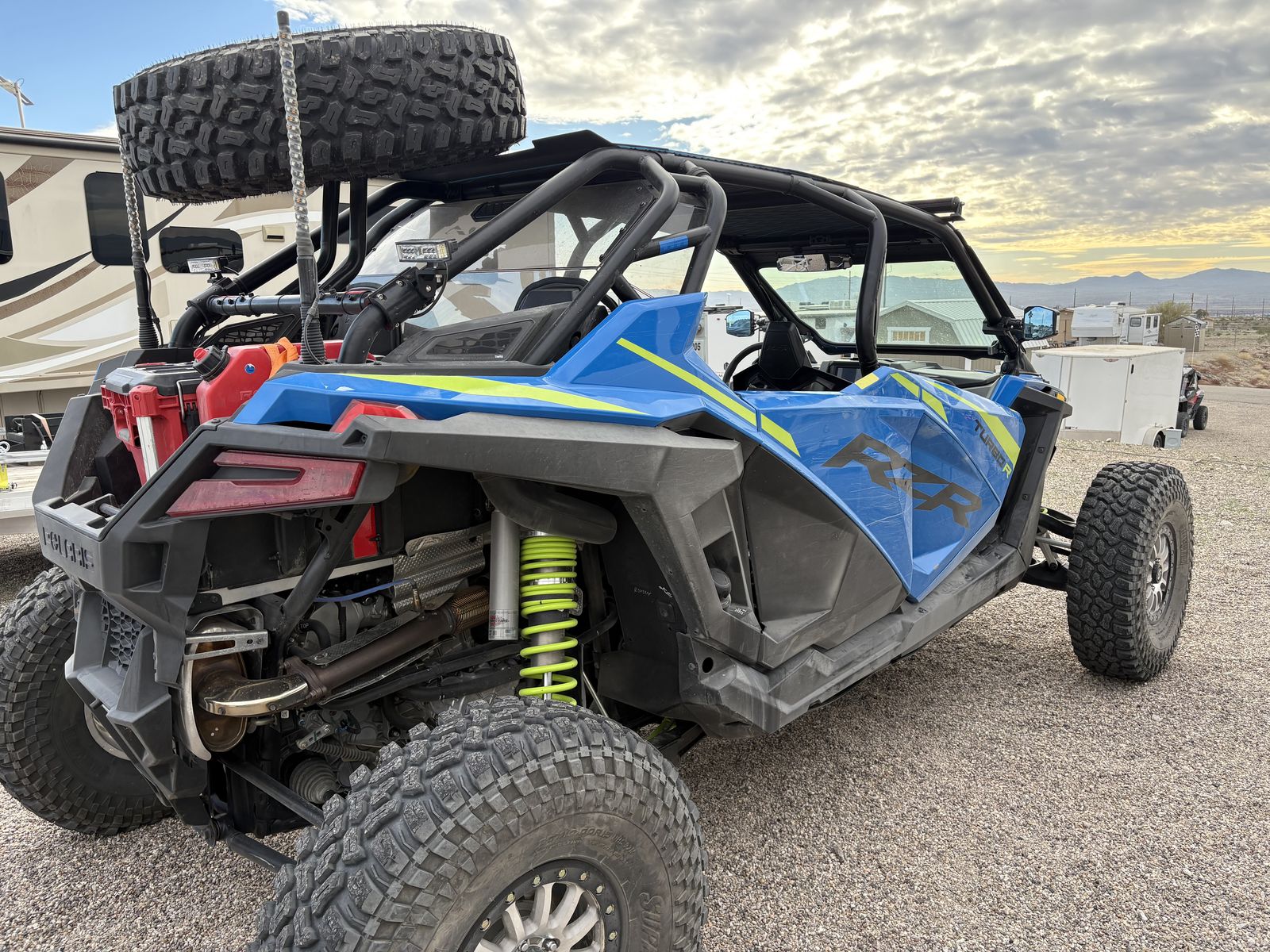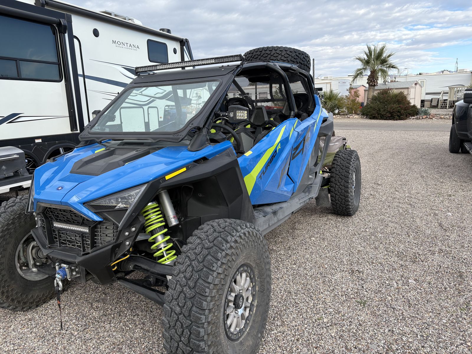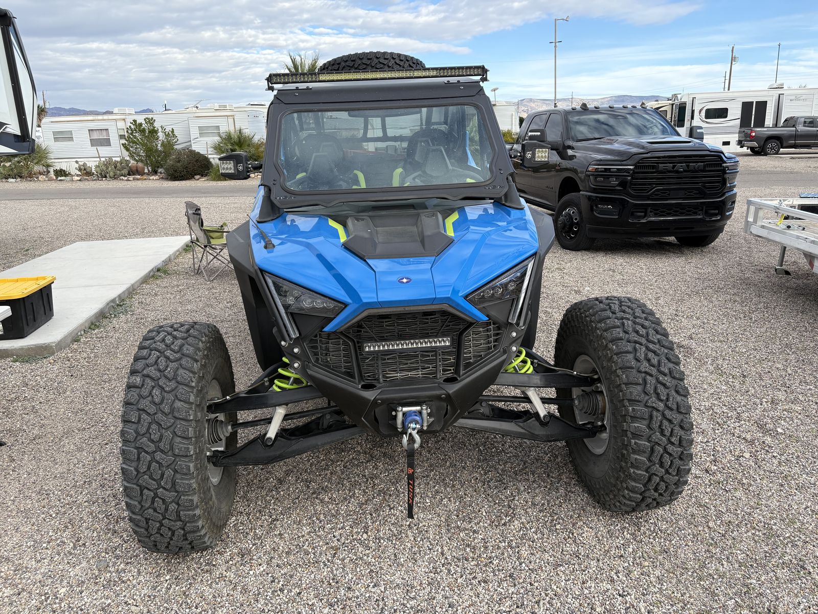 This machine is beautiful and currently has 1450 Miles. It is loaded with great features. It has the Ride Command system with a rear camera and an amazing sound system. This machine also features a glass windshield, a rear windshield, lighted mirrors , two light bars, winch , rear back up lights, lighted whips, custom interior roof, and street legal. It will be sold with new OEM tires and wheels. THE MACHINE CURRENTLY HAS 35" Super ATV INCURSION tires on bead locks. THIS TIRE AND WHEEL SET UP IS NOT INCLUDED IN THE PRICE BUT MAY BE BOUGHT FOR AN ADDITIONAL $1850 which would include the spare tire.