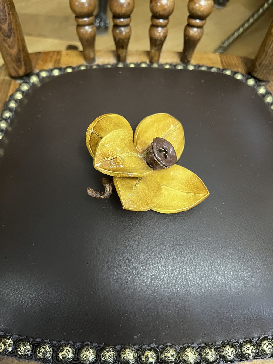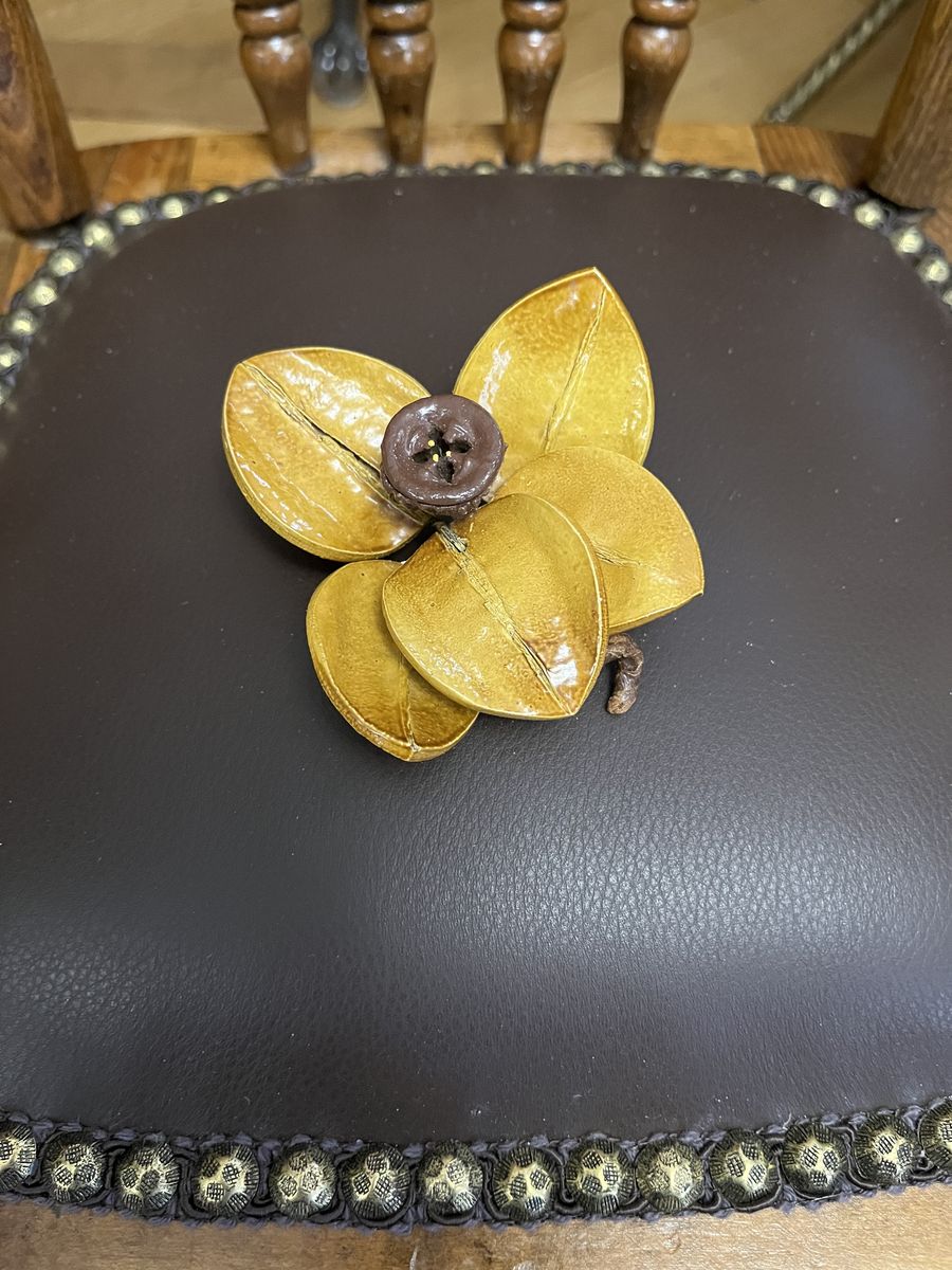 VenmoOwn something fun and unusual that no one else will have. This has five leather petals and dark brown center. It is 3 3/4 inches across at the widest point. Must see! Price is firm.