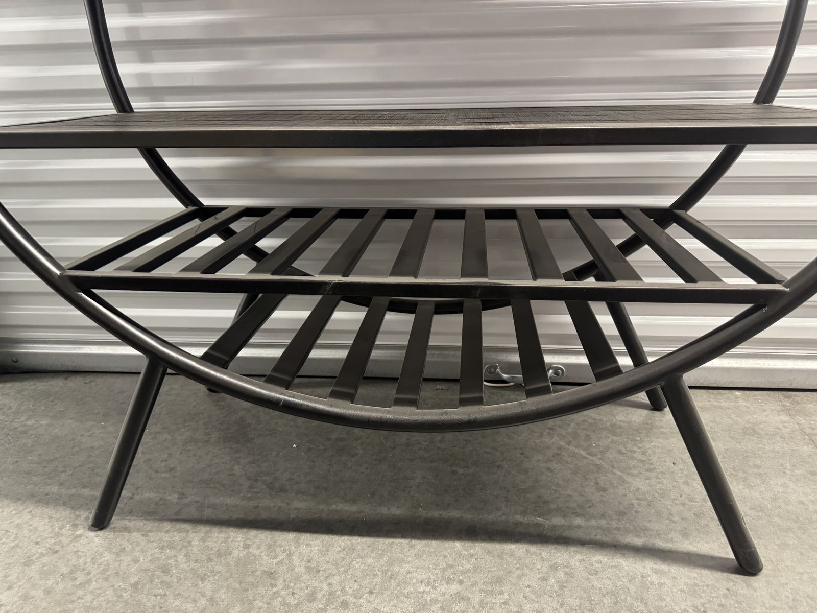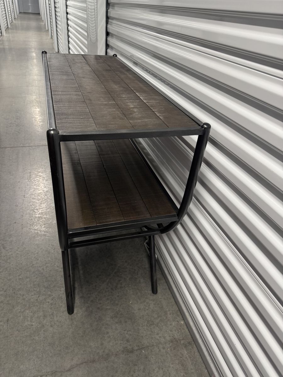 VenmoStylish industrial-style wine rack with wood shelves and a black metal frame. Perfect for a kitchen, dining room, or home bar setup.