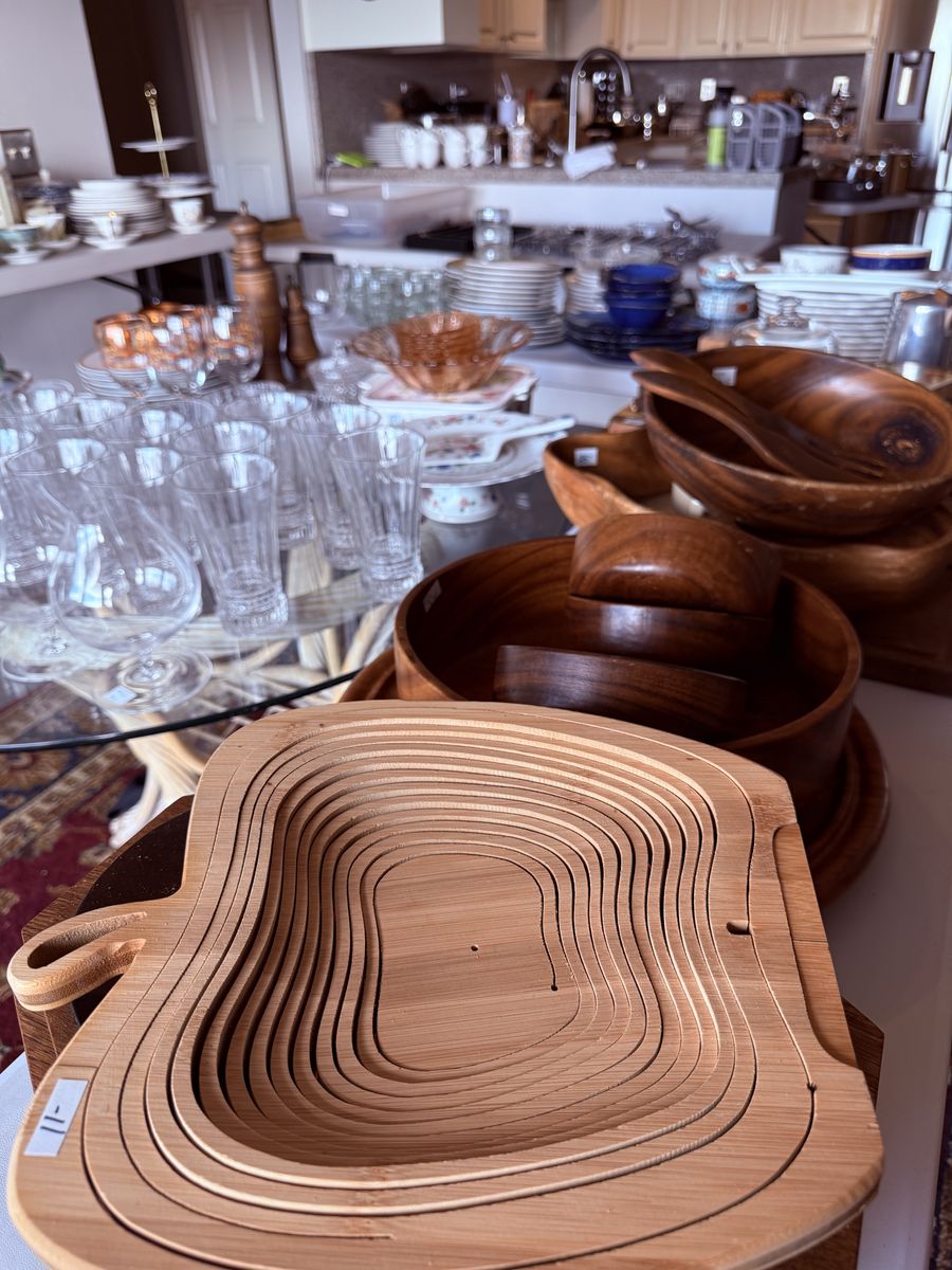 So far, we know there is lots of original artwork, handwoven rugs, high end traditional and mid-century modern furniture, fur coats, vintage clothing, hats and accessories, a diverse collection of high-quality dinnerware, quality patio furniture and much more. Treasure hunters, collectors and just lovers of timeless beauty will all enjoy this sale.
