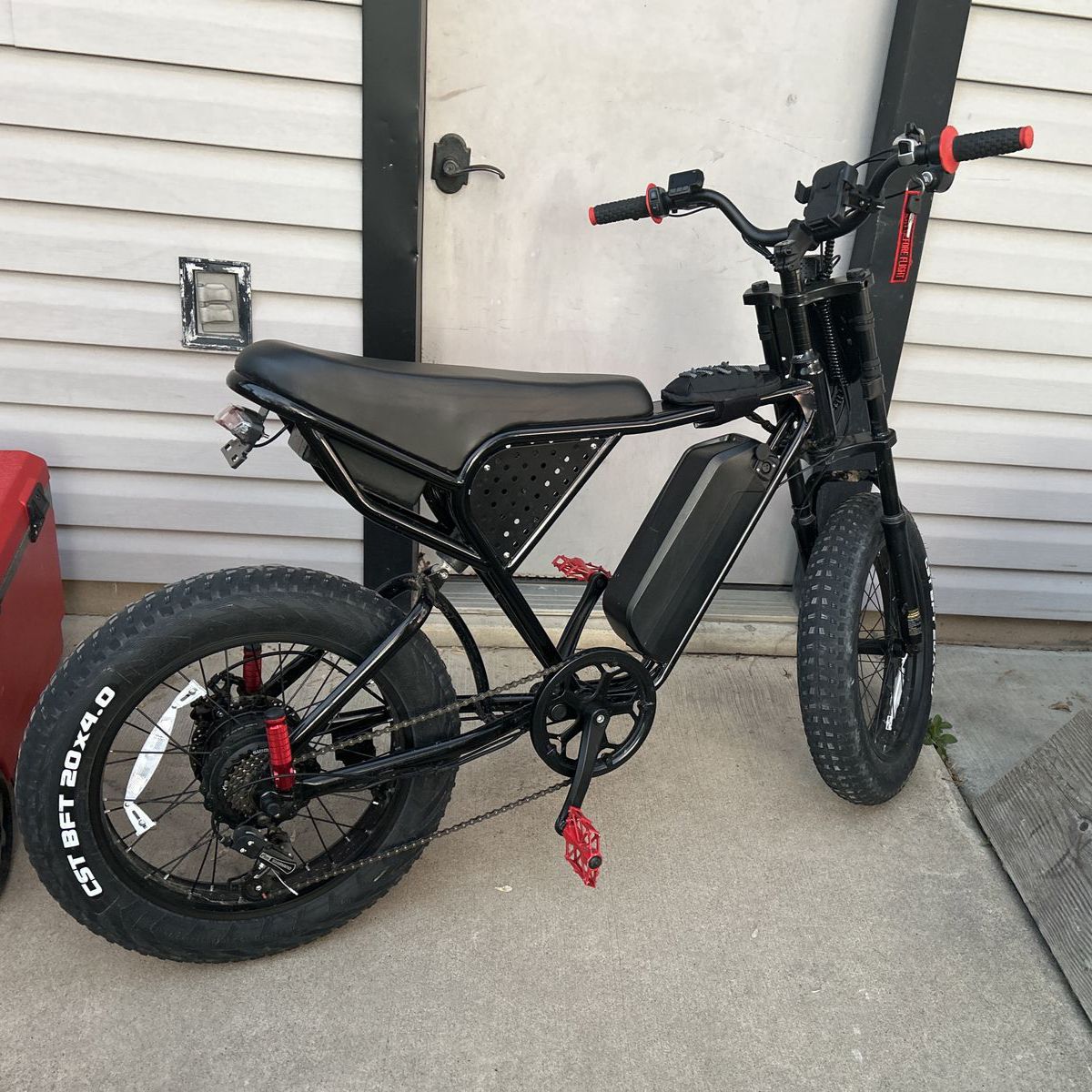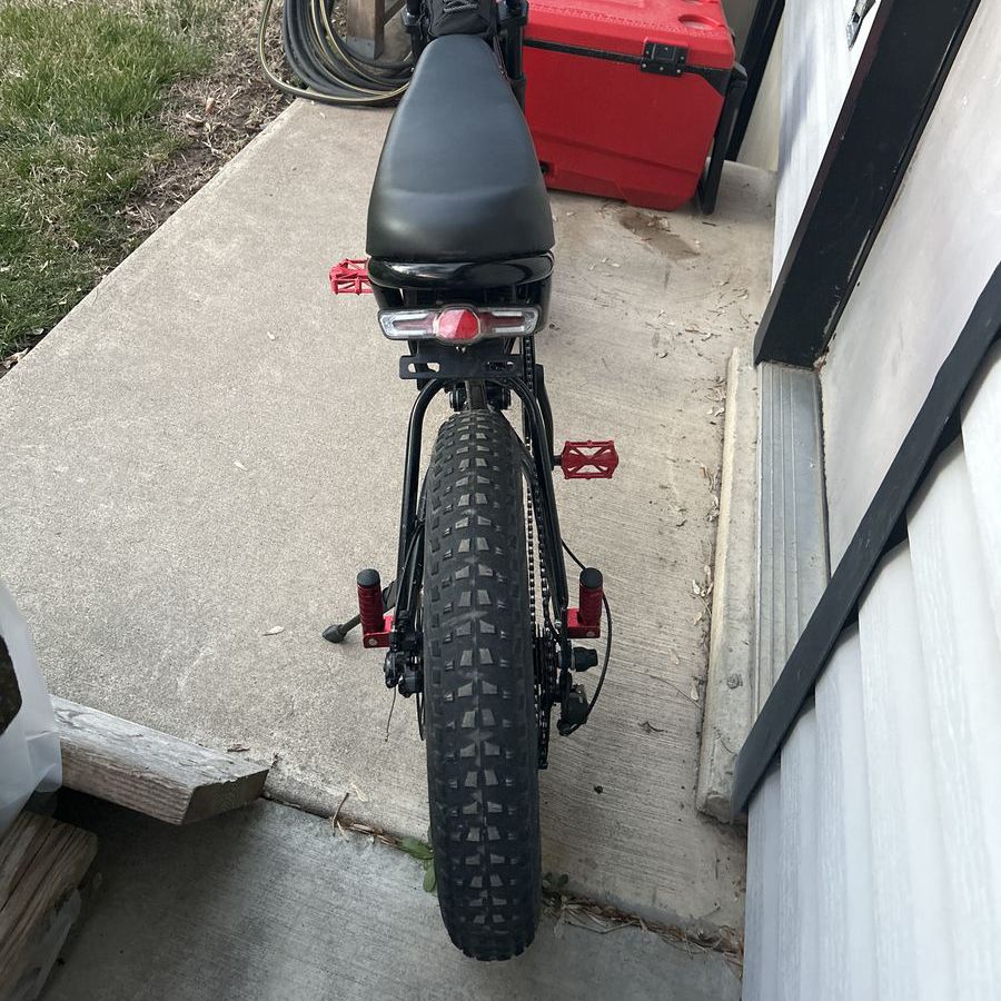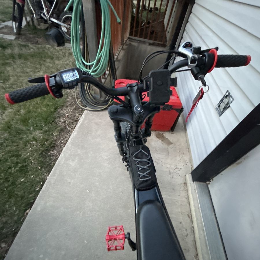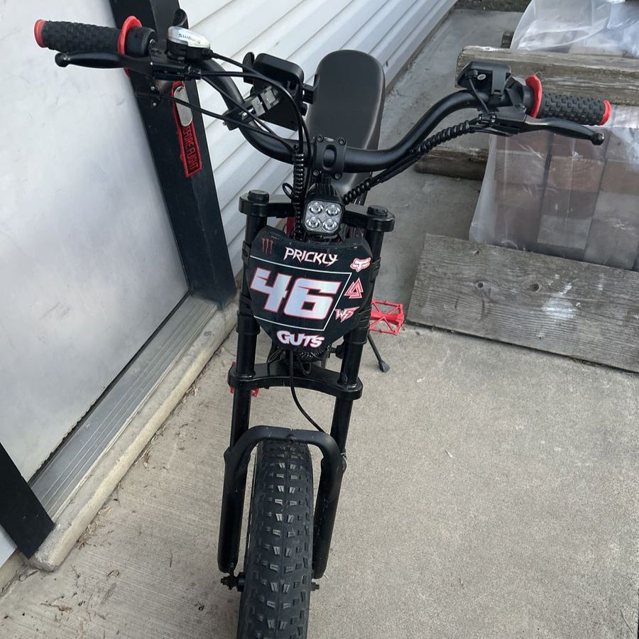 VenmoRed and black ridstar q20 , 30 mph charger included, with a range of 25-30 miles, bright led light with horn, passenger pegs, with slime filled tires, and number plate.