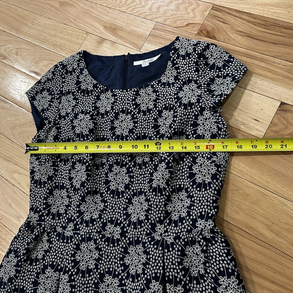 Boden Arianna Floral Embroidered Navy Blue with Ivory White Floral Detailing Shift Dress - Women’s Size 8 Regular - with cap short sleeves, pockets, back zipper closure and fully lined - excellent condition - pre-owned.