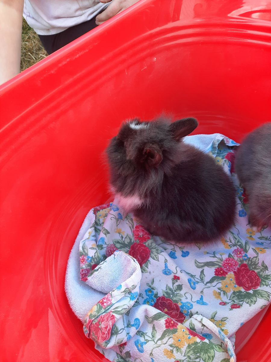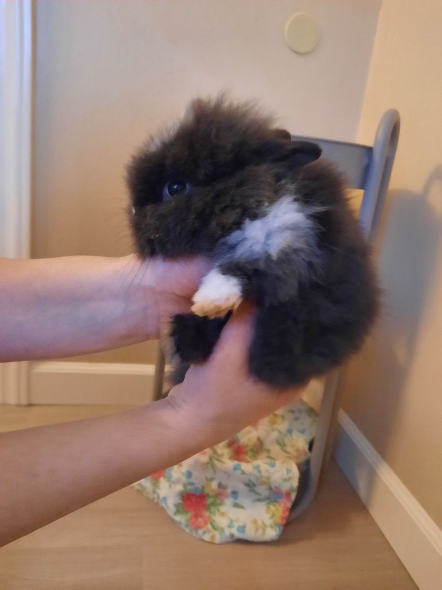 VenmoFemale Lionhead mix bunny. She's about 10 weeks old now. She's black and white. Super friendly, and is held regularly. Kid friendly. Waiting for her furever home! She's used to being outside but could transition to being inside.