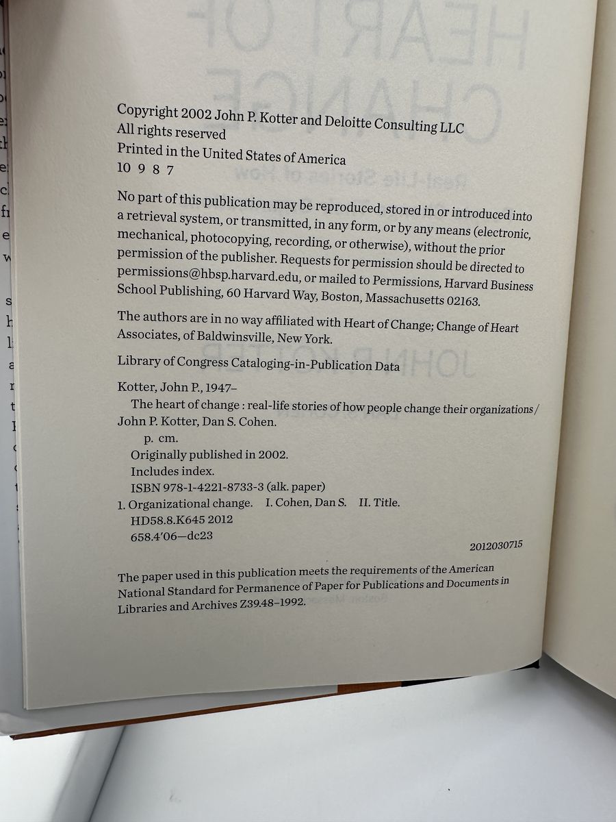 ApplePayThe Heart of Change: Real-Life Stories of How People Change Their Organizations by John P. Kotter and Dan S. Cohen is a highly respected book on leadership, organizational transformation, and change management.