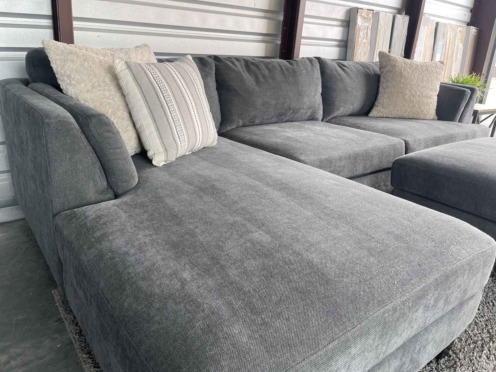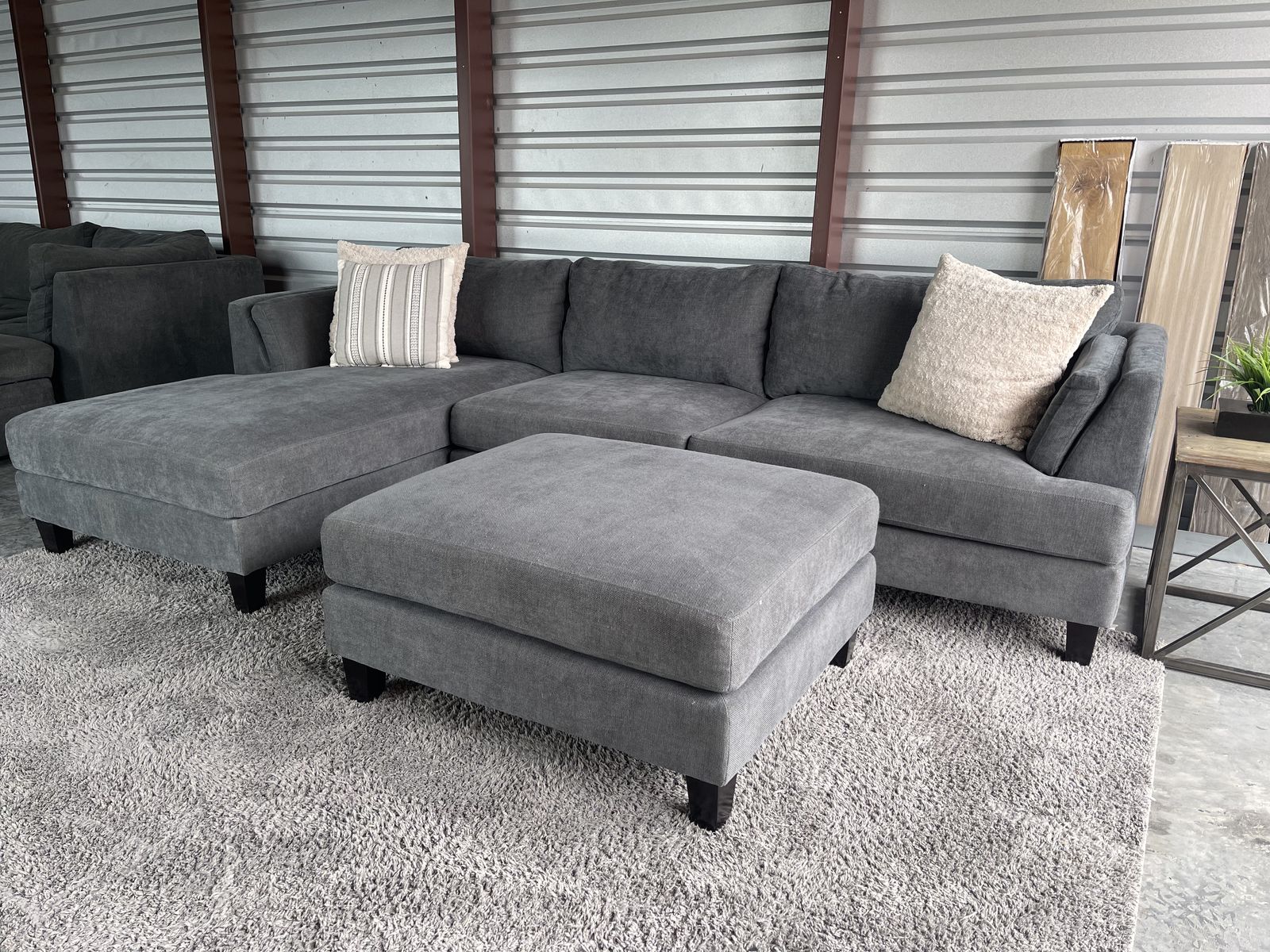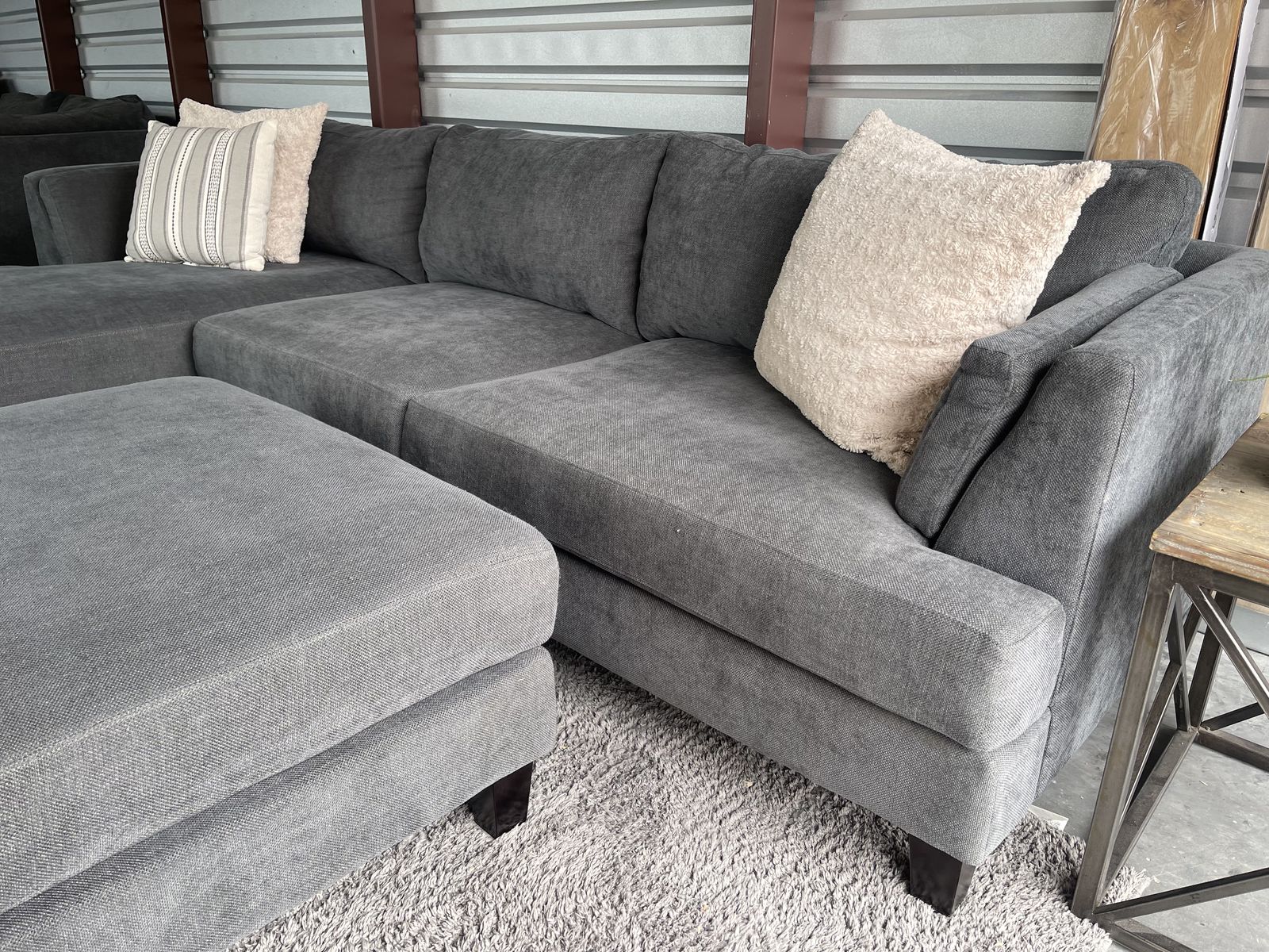 I am selling a Gray Costco sectional sofa couch with ottoman in good condition!