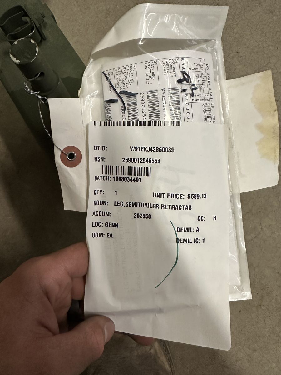 M149 Water Tank Trailer Caster Leg Assembly , 12259830-1 NSN: 2590-01-254-6554 ITEM #10 IN IMAGE