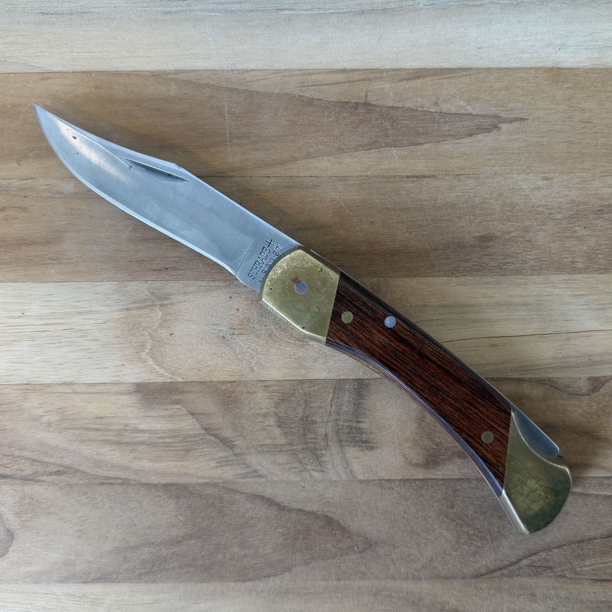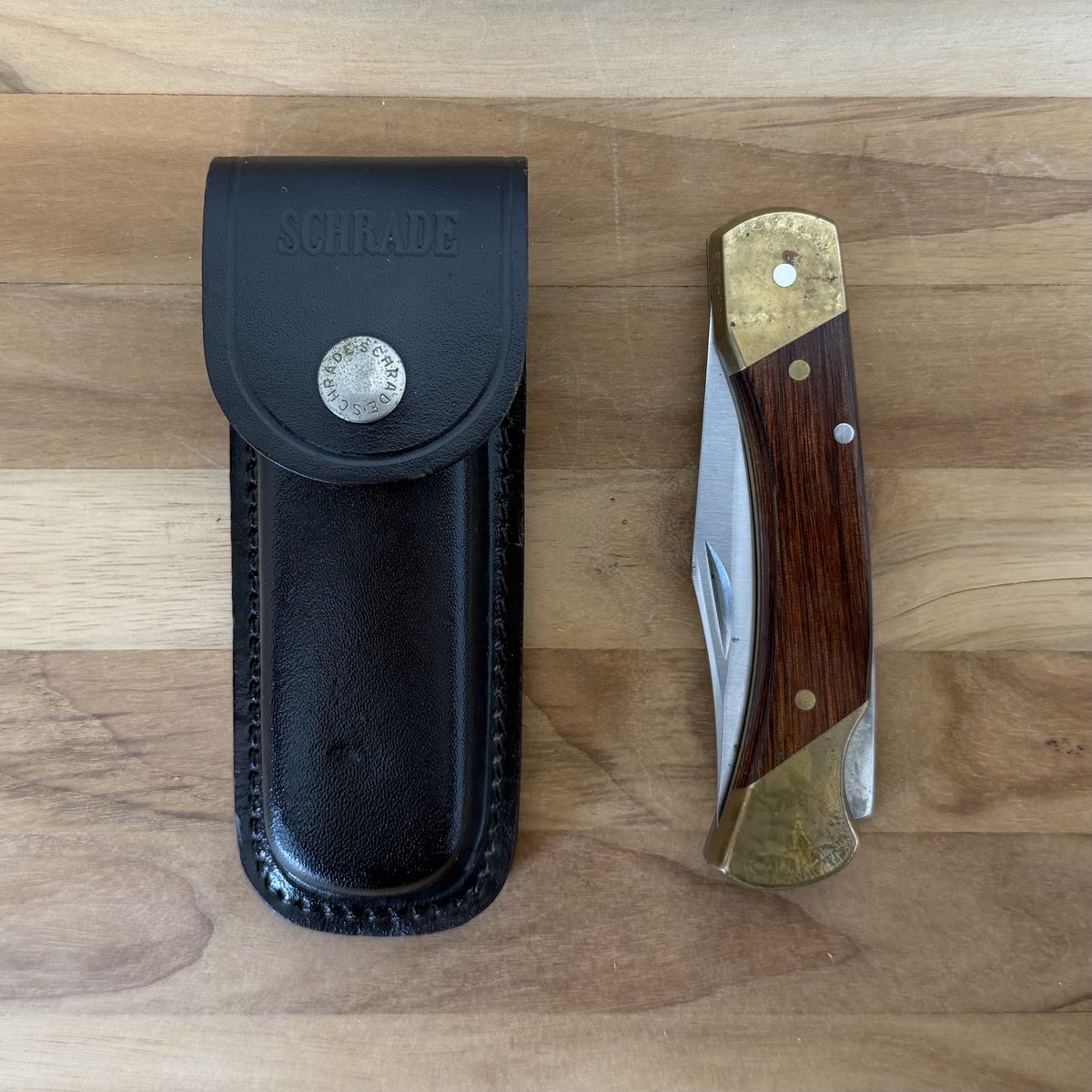 ZelleRare vintage Schrade knife and leather sheath in excellent condition. Extremely sharp new edge.