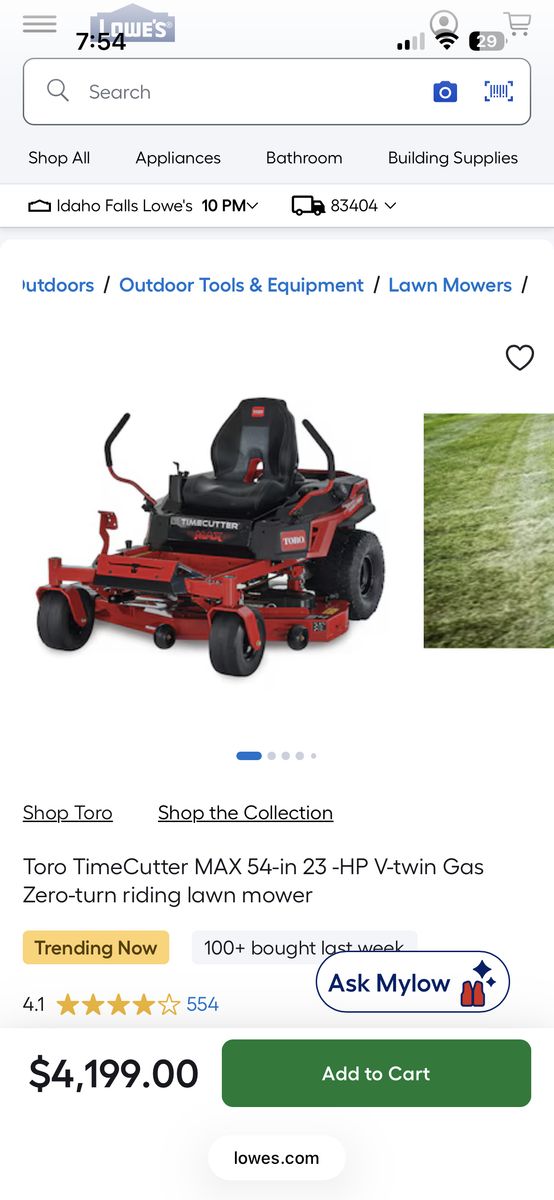Toro TimeCutter Max 54 23 hp Lawn Mower. 54” deck 23 hp Kawasaki motor purchased new last June ‘25 Approximately 5 hours of use Will come with- mulching blades / kit, new never used side discharge blades / kit, and new in box striping kit. Always stored indoors Great mower! Save $700+ over new