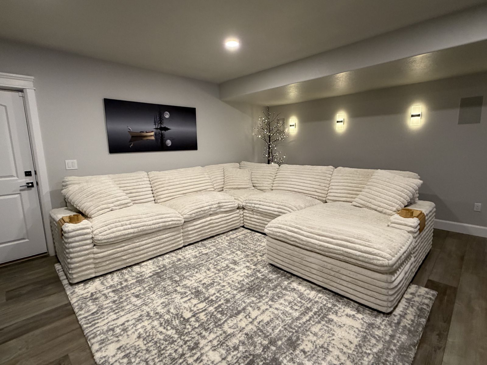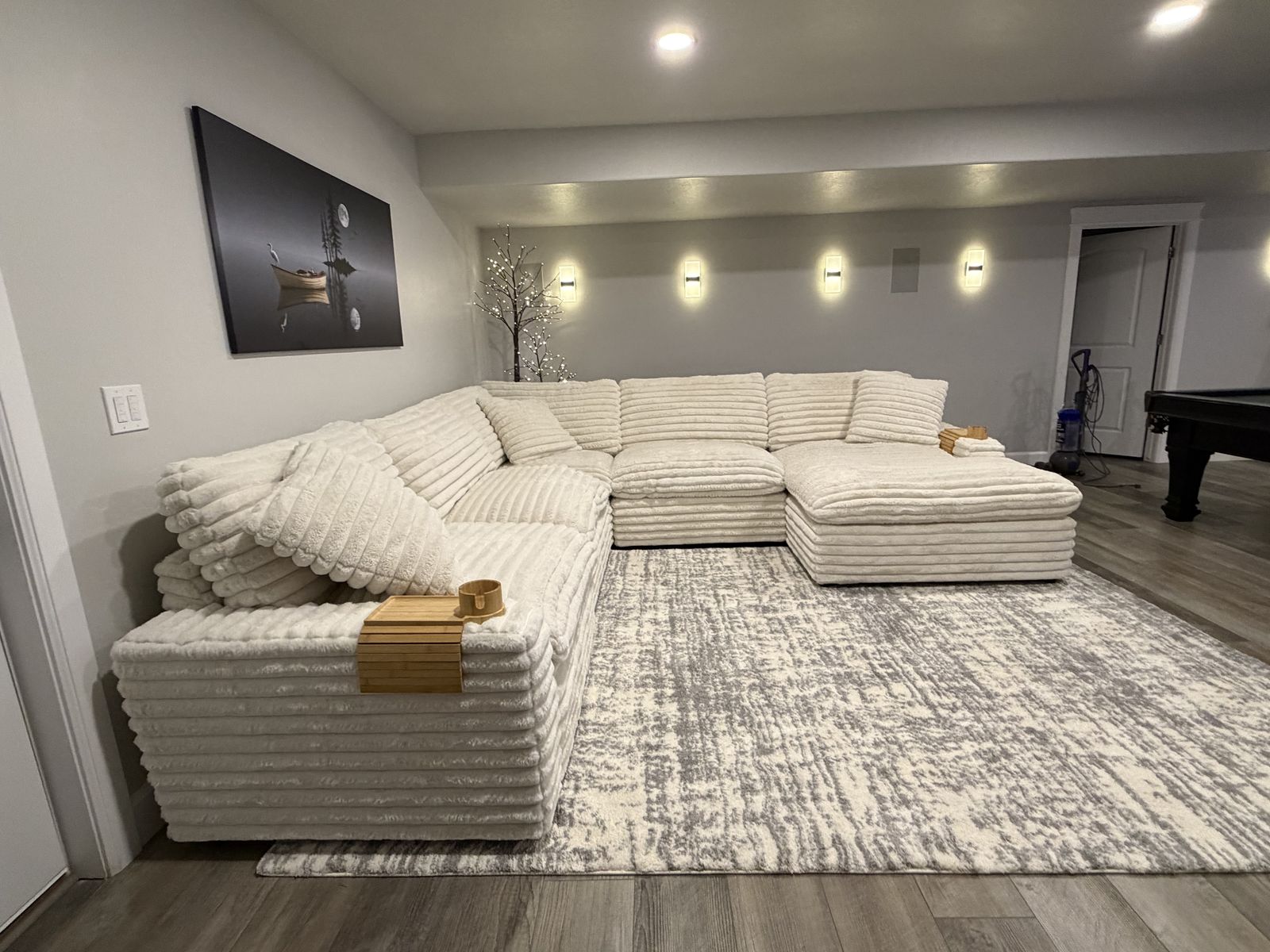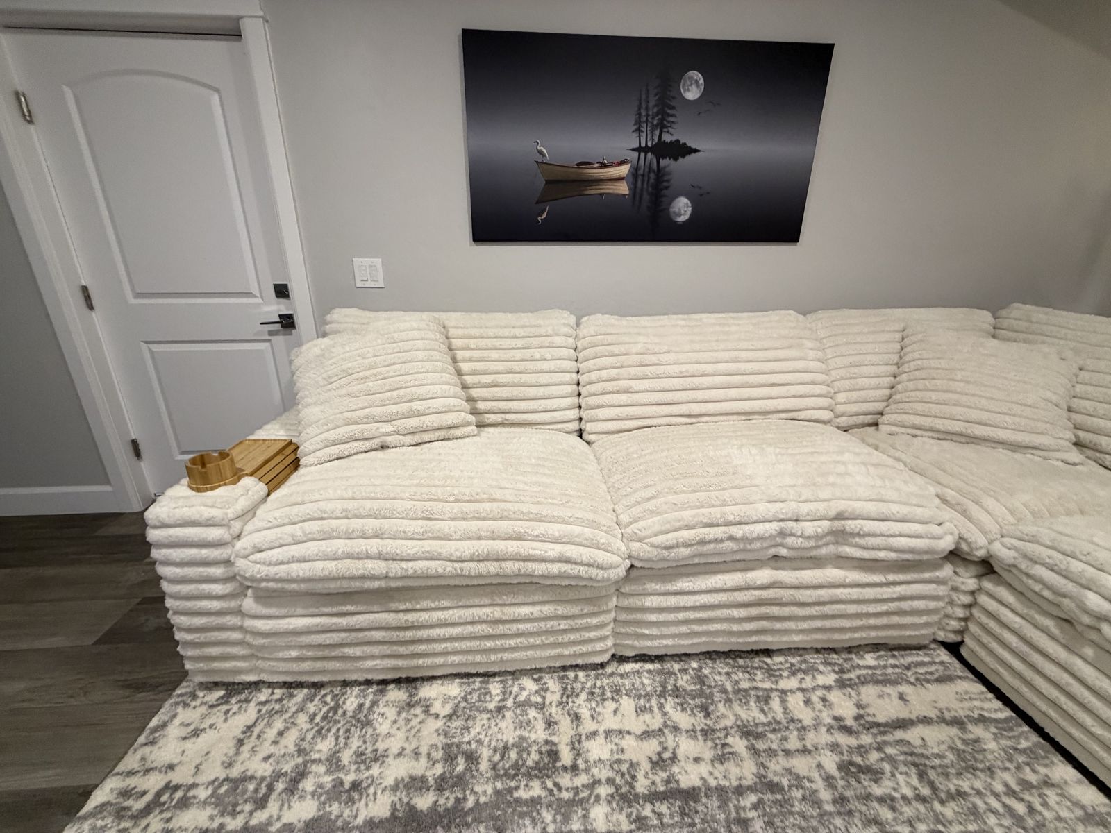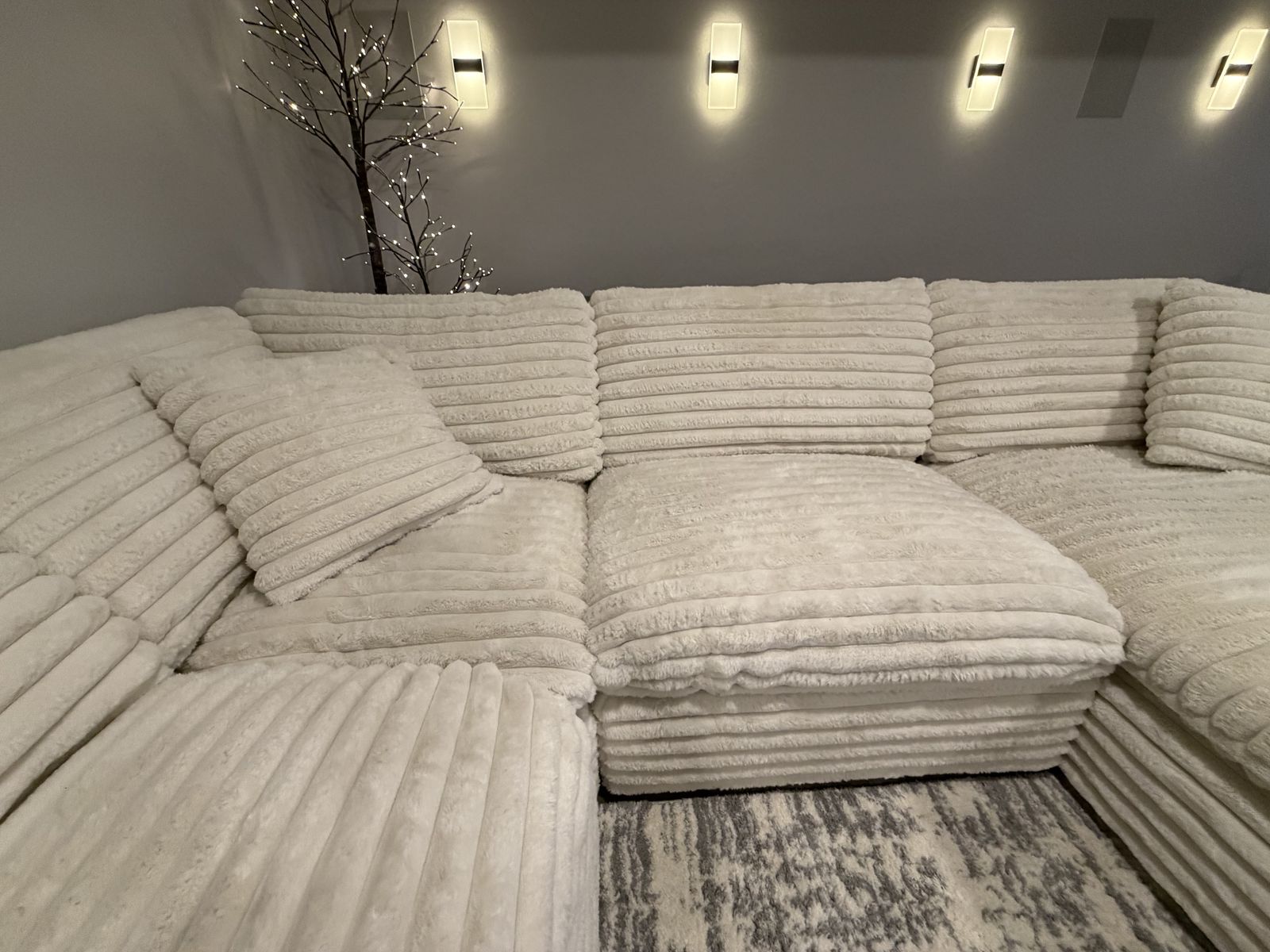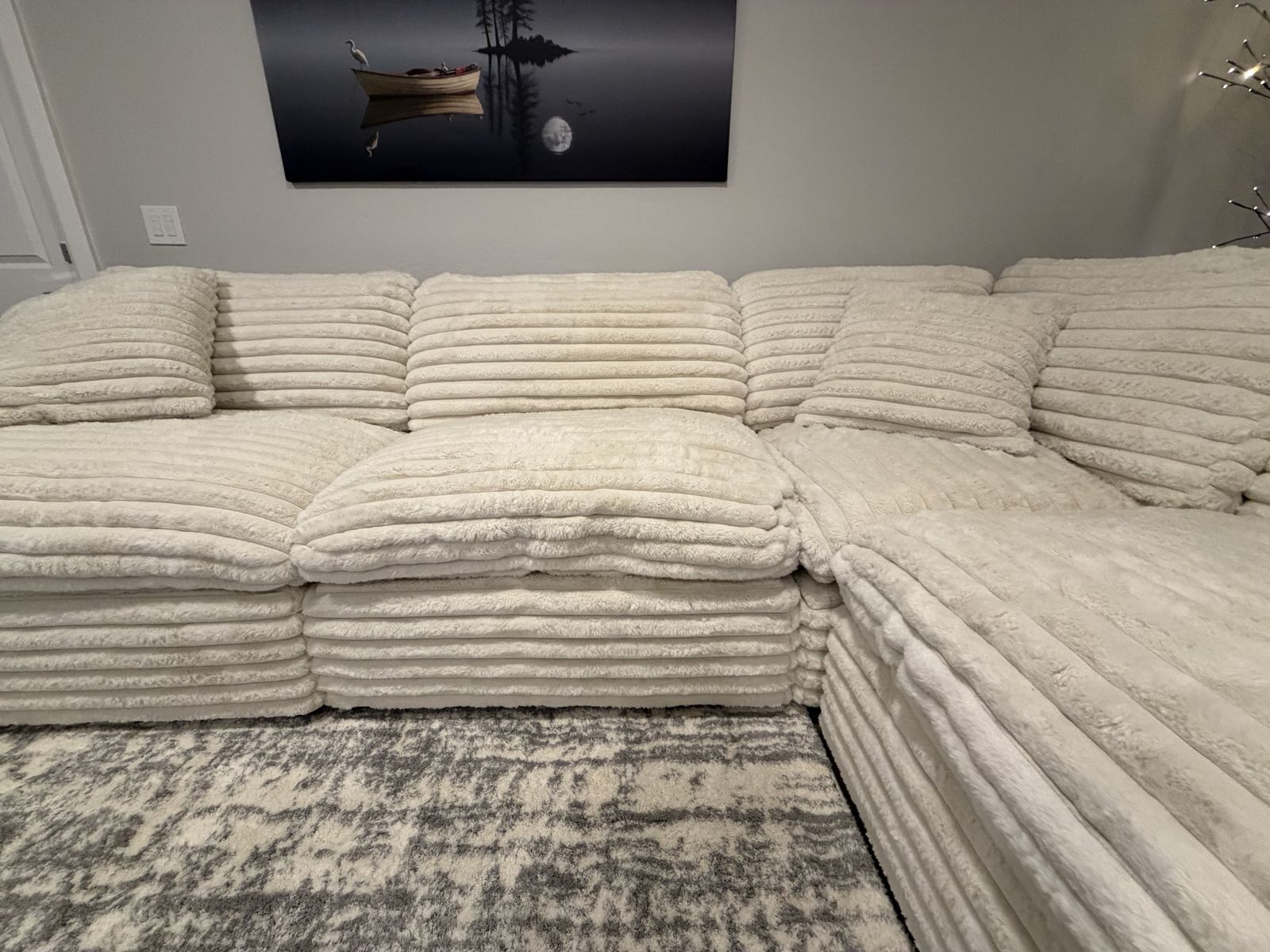 VenmoSerenity Fluffy Cream Corduroy 137 Oversized 5 Piece U-Shaped Sectional With Right Arm Facing Chaise New - Excellent Condition