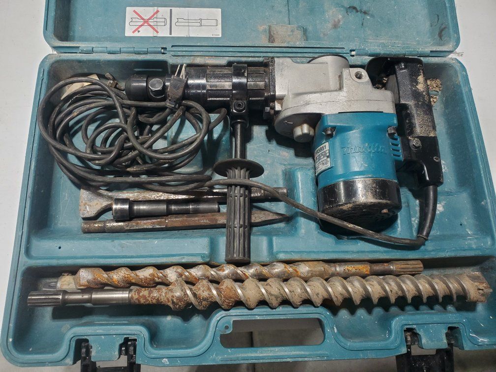 Heavy-duty Makita HR3851 rotary hammer drill. Comes with the original Makita hard case and several large masonry bits/chisels.