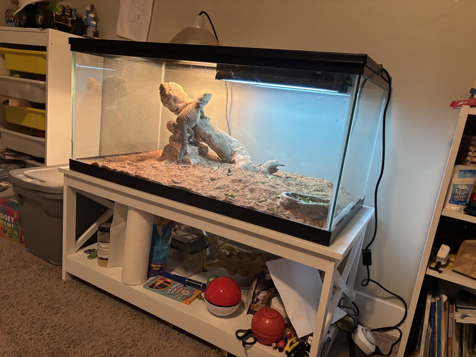 My son is selling his healthy, well-cared-for bearded dragon, approximately 1 year old.