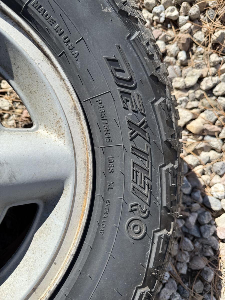 5x4.75 Chevy wheels tires are almost brand new tires they are Dextero all terrains 235/75r15